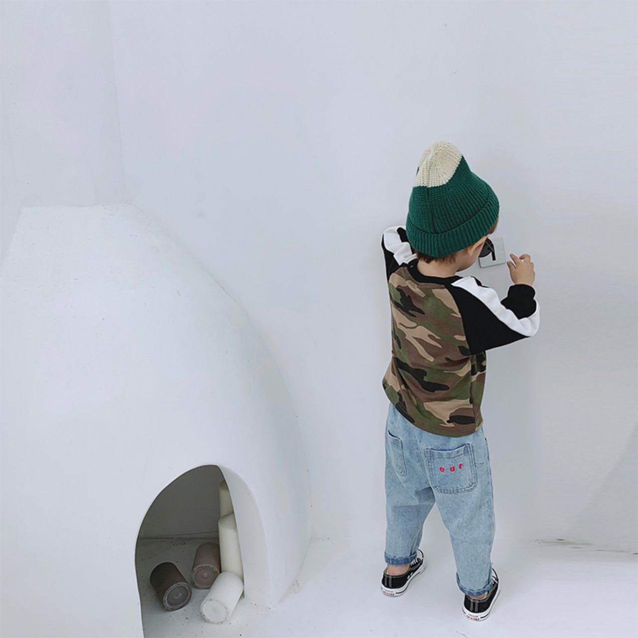迷彩柄スウェット スプリングスタイルトップス 長袖スリーブシャツ ロング 春物 キッズ mi0666916478887