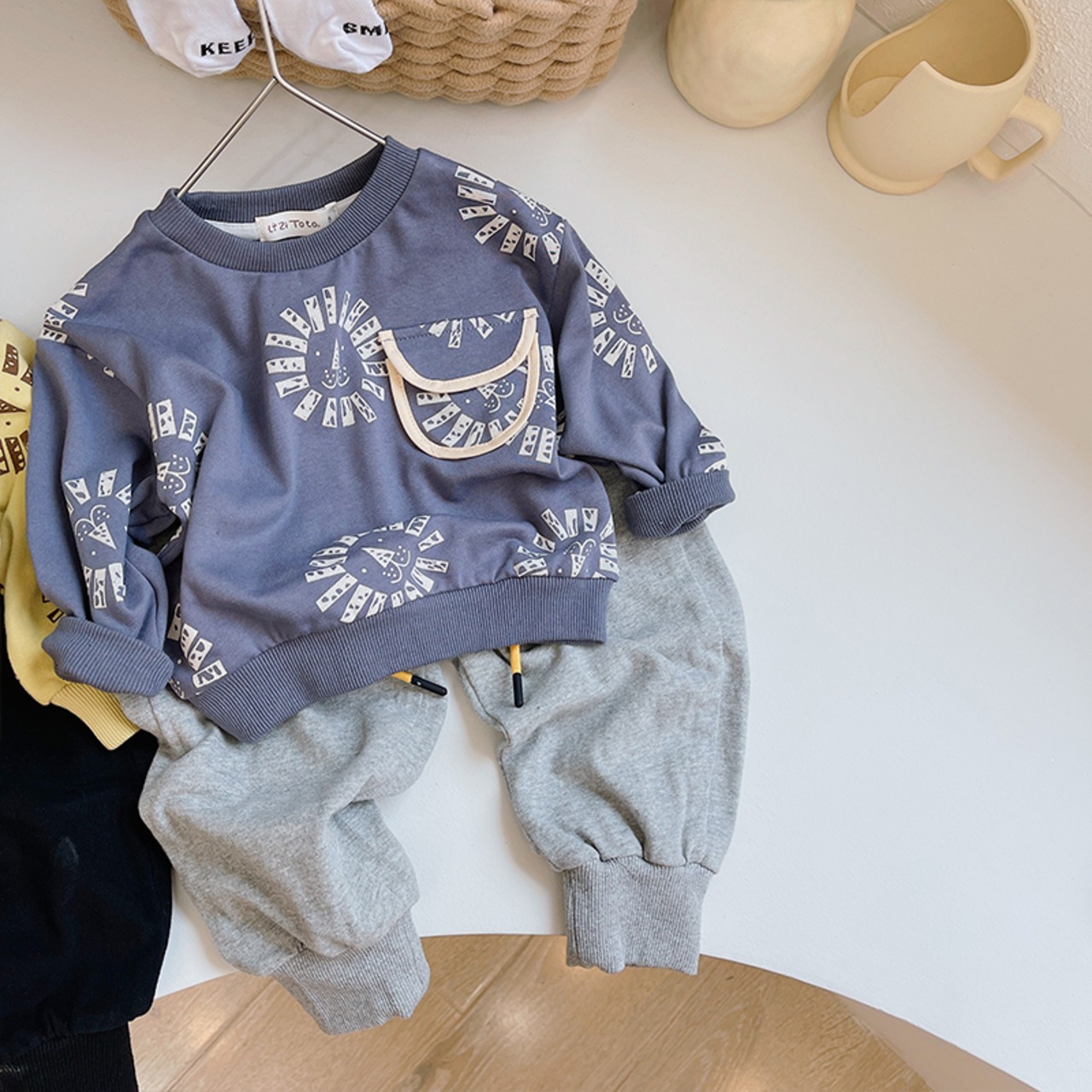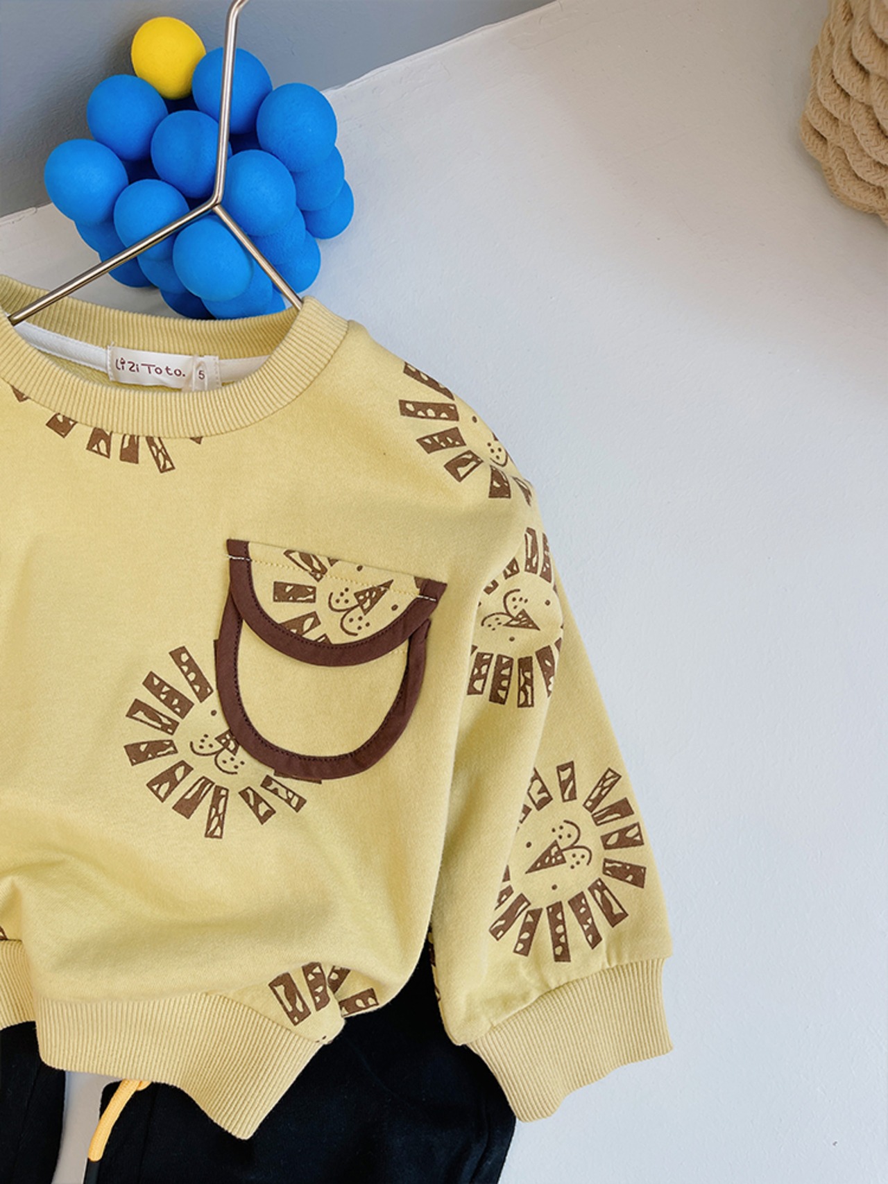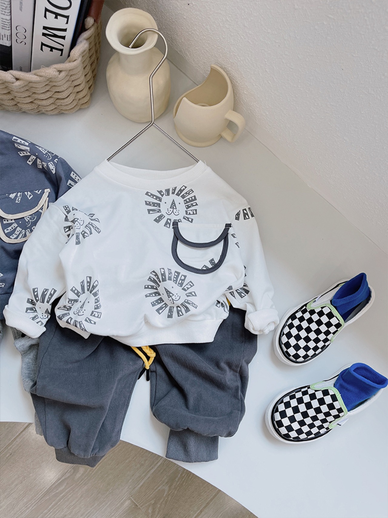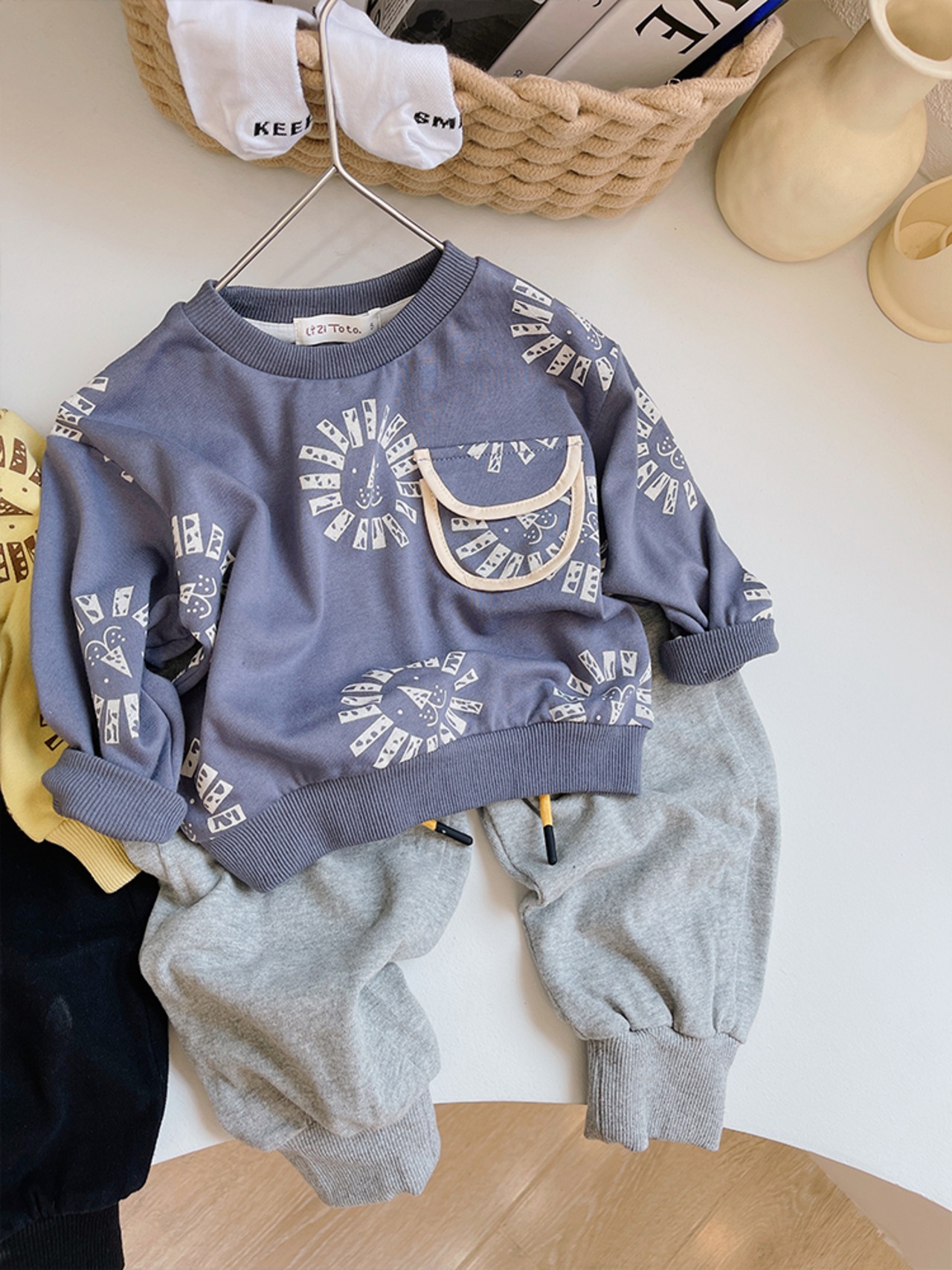 オータムラウンドネックプリントセーター ポケットプルオーバー コットン 大人ガーリー スウィート キュート カジュアル 秋物 Oネック 8/3 mi0680308718736