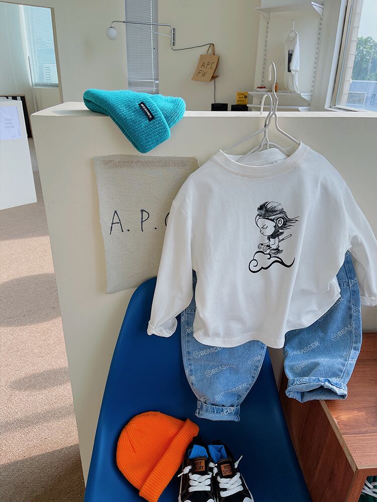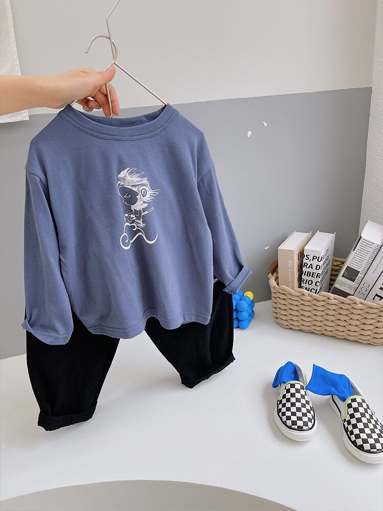 スプリングオータムカジュアルラウンドネックシャツ プリントTシャツ ロング 春物 秋物 Oネック 8/3 mi0632502718555