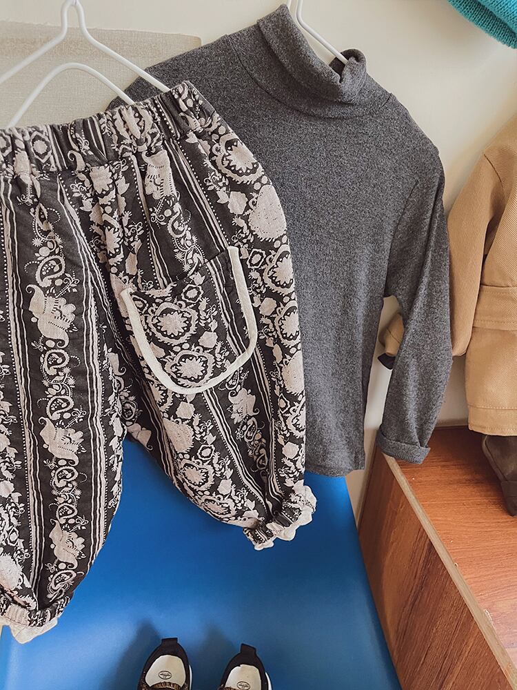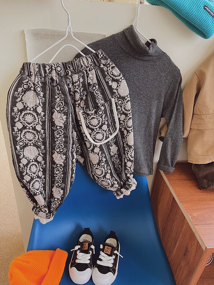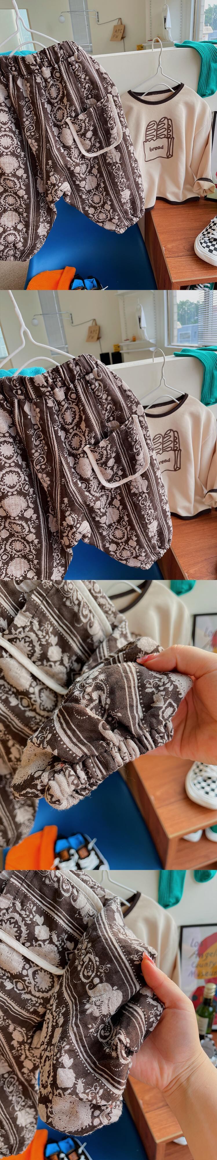 スタンダードカジュアルパンツ ダークFlowerデザイン オータム コットン レトロ 秋物 フラワーデザイン 8/3 mi0671090536075