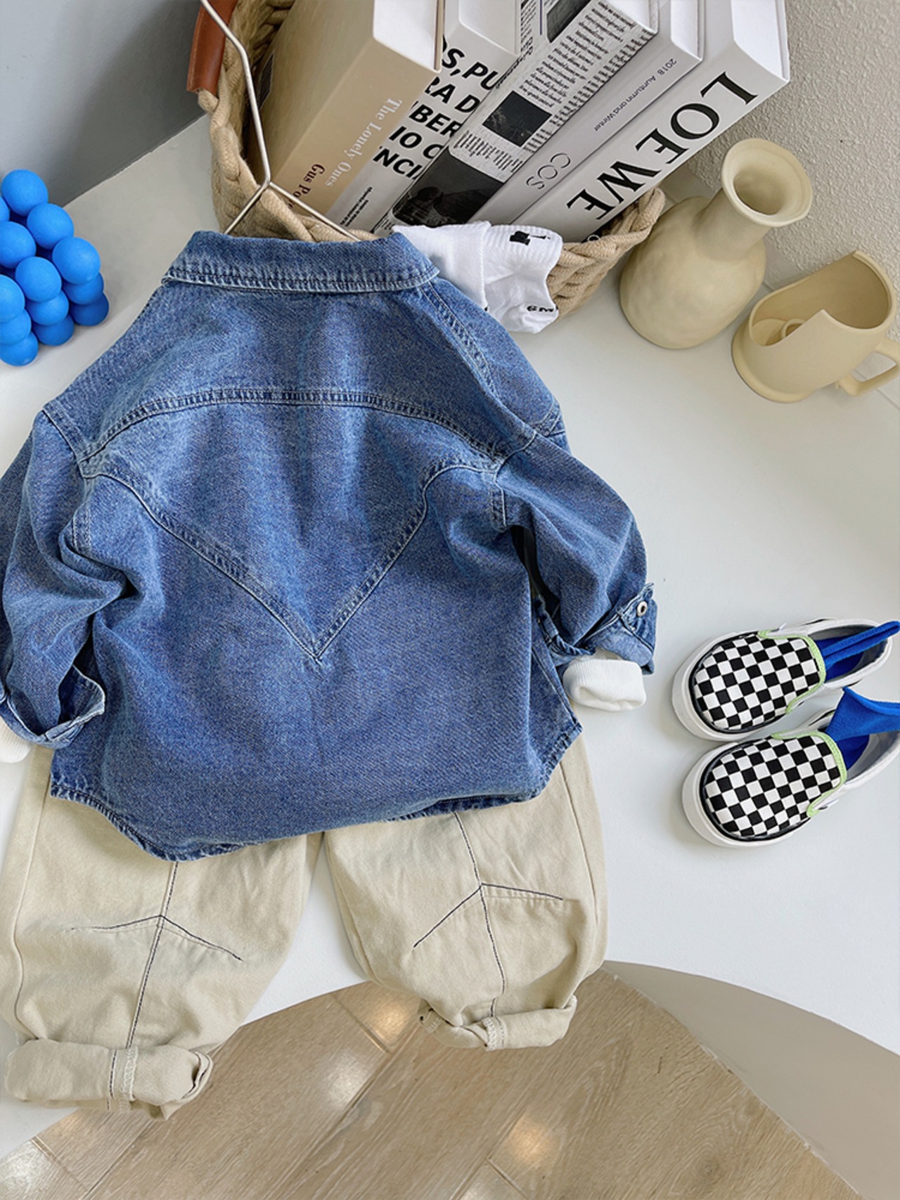 ブルーシャツ スプリングオータムポケットトップス 春物 秋物 8/3 mi067711867988