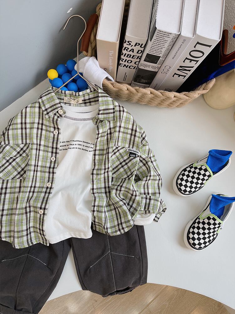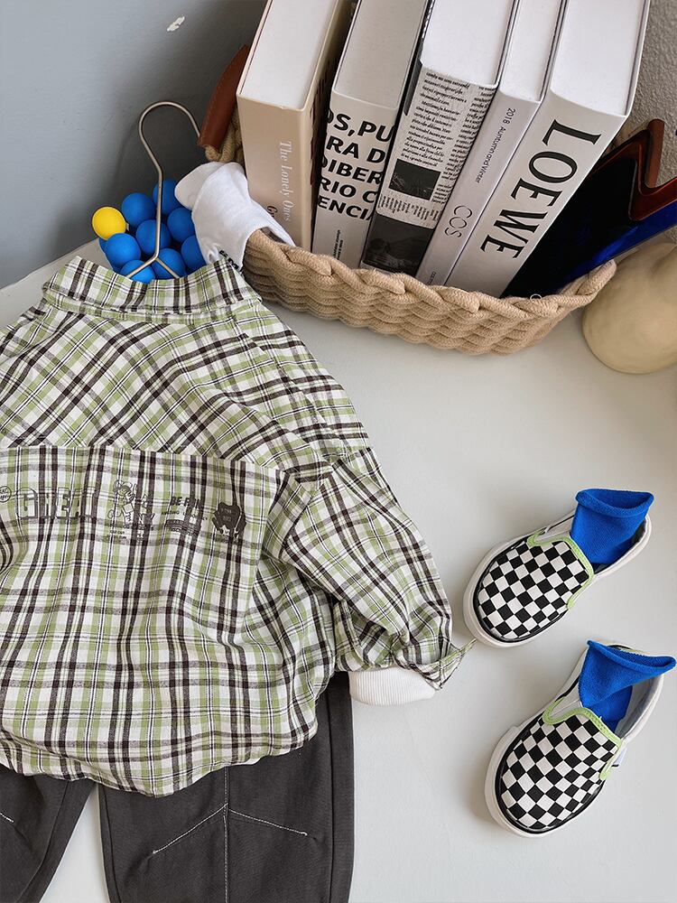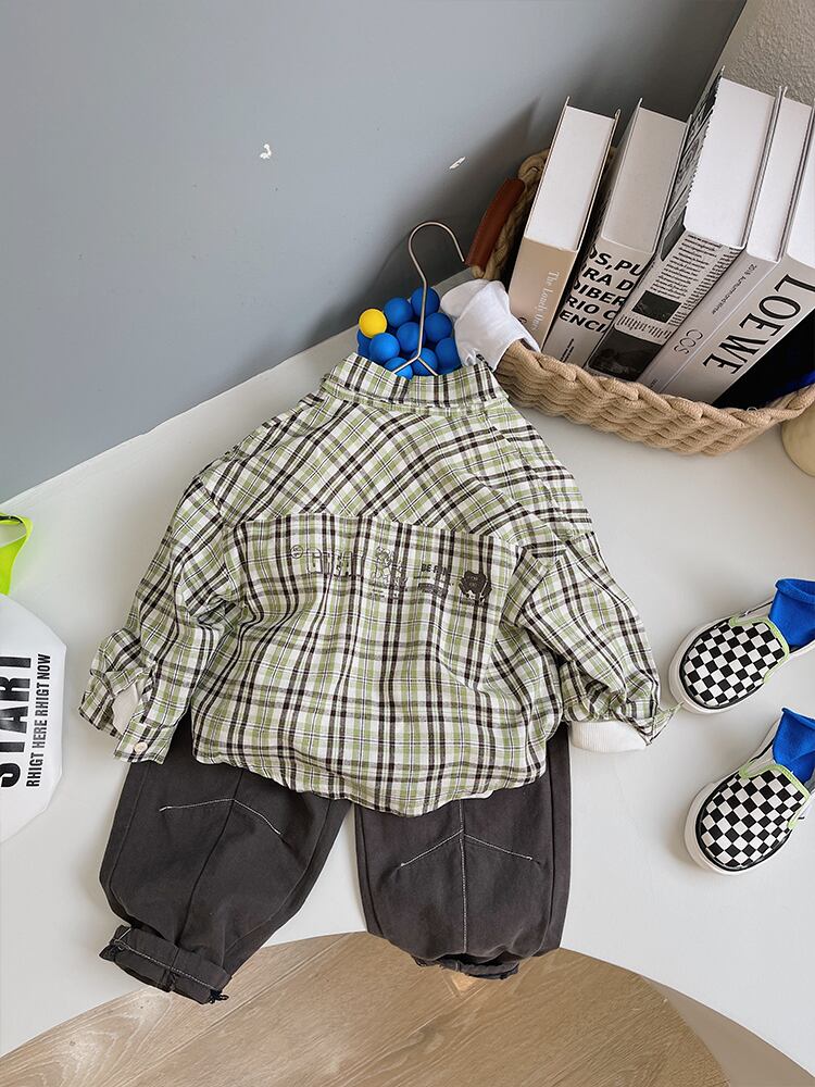 グリーン格子柄シャツ ルーズオータム ロング 秋物 8/3 mi0677649407664