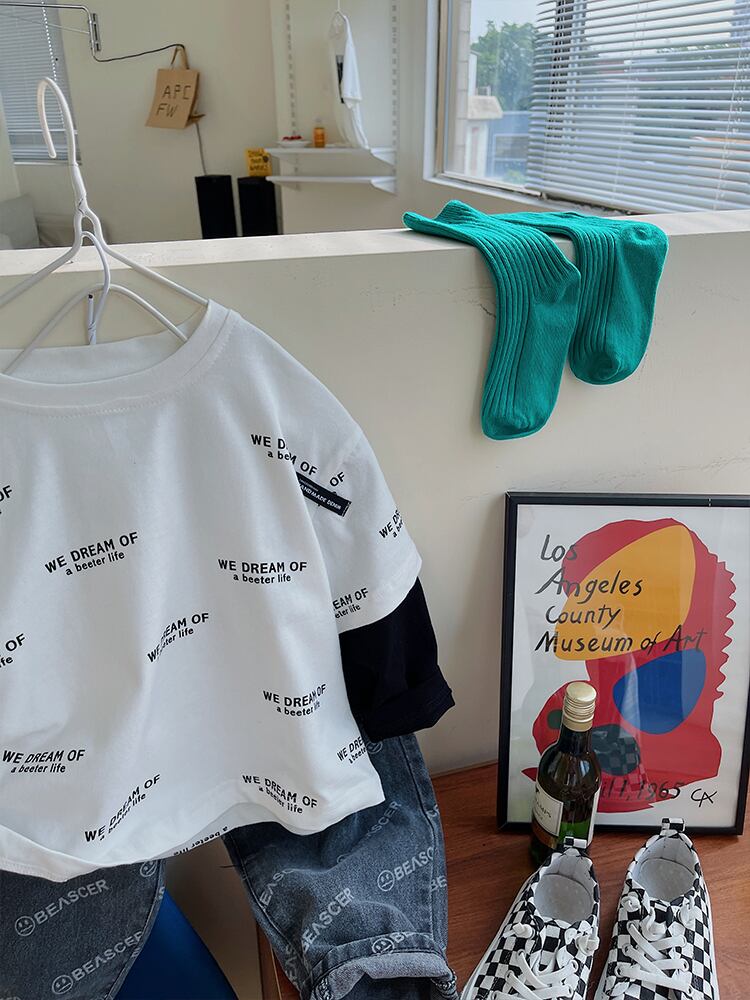 オータムホワイトTシャツ シャツ プルオーバー ロング プリント 秋物 ステッチ 8/3 mi06379632640