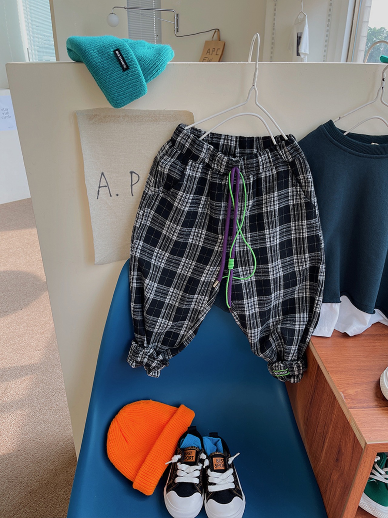 格子柄カジュアルストレッチウェストギャザーオータム エラスティック 伸縮 秋物 8/3 mi0682474358024