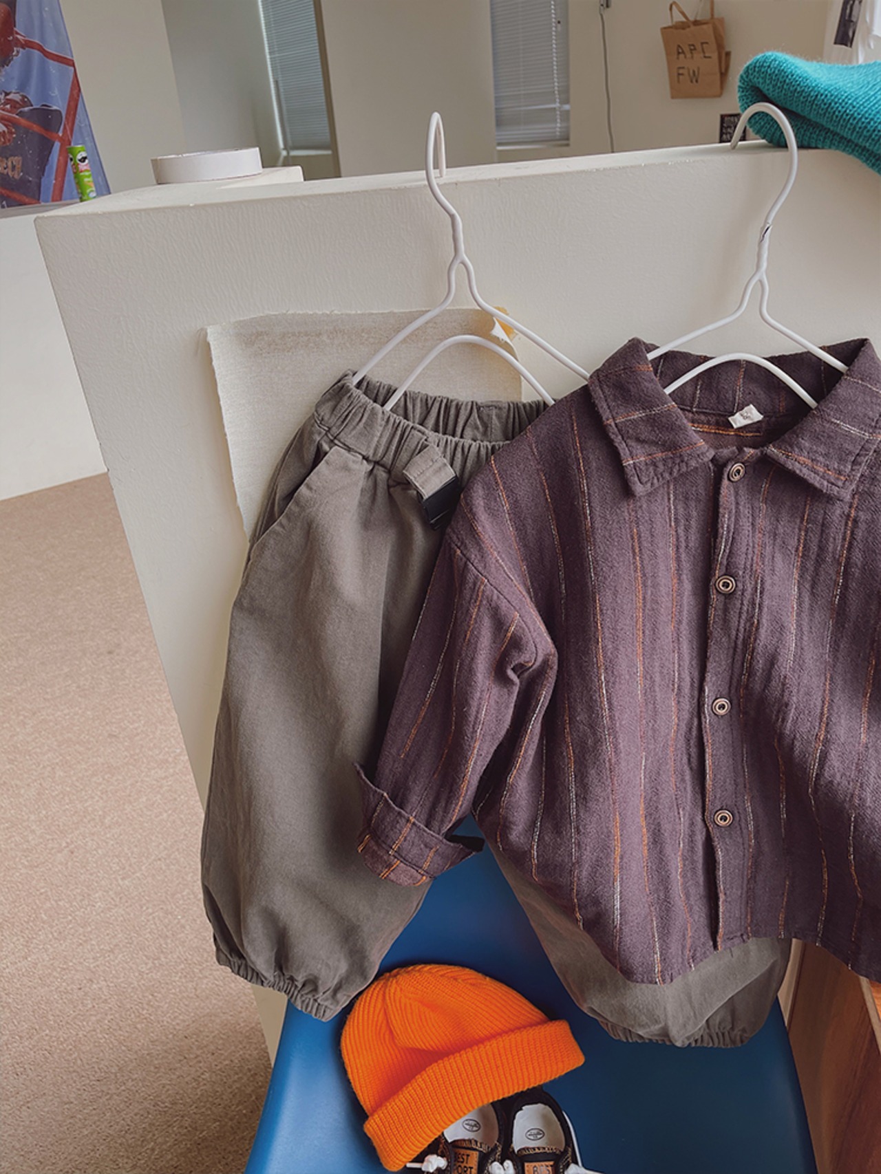 スプリングオータムカラーストライプシャツ ボタン長袖スリーブカーディガン ロング コットン 春物 秋物 8/3 mi0654789530441