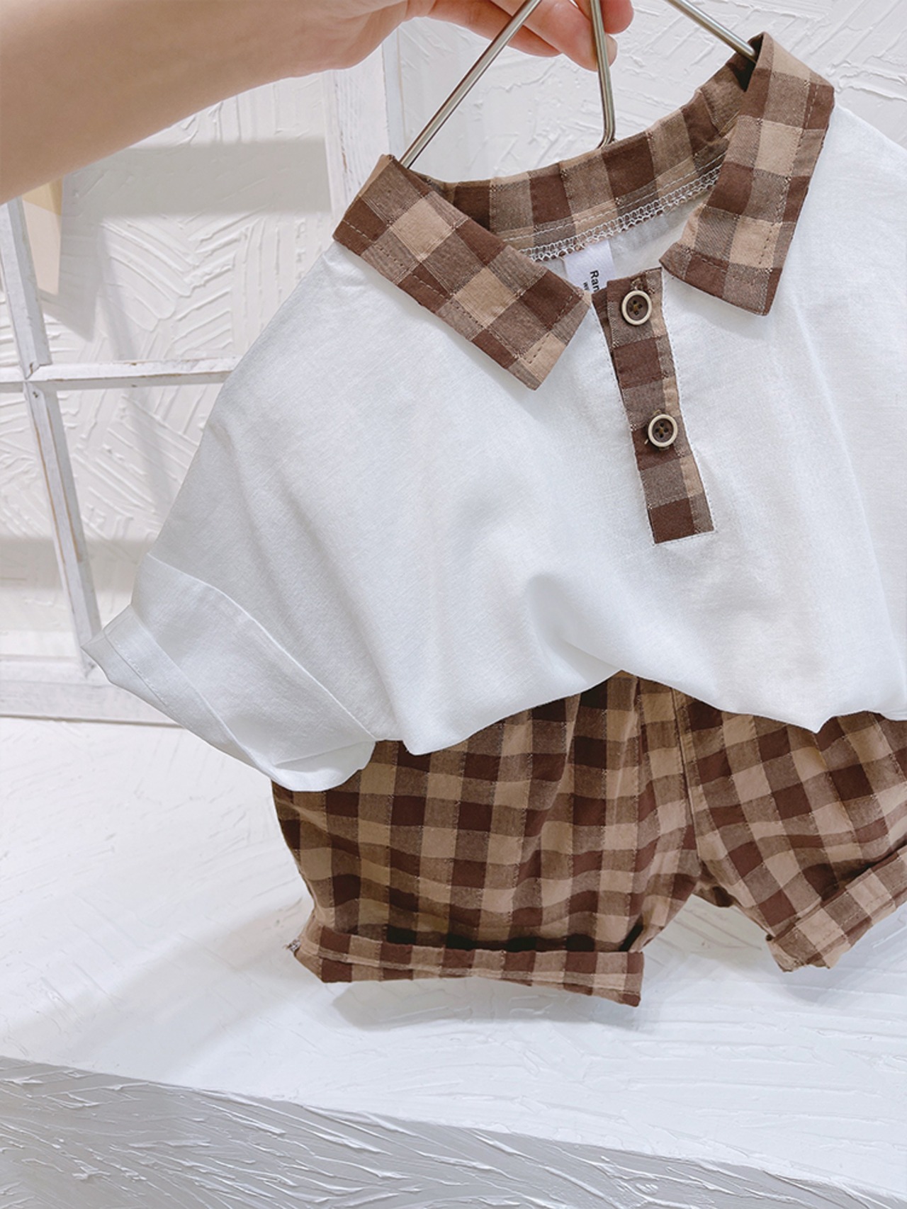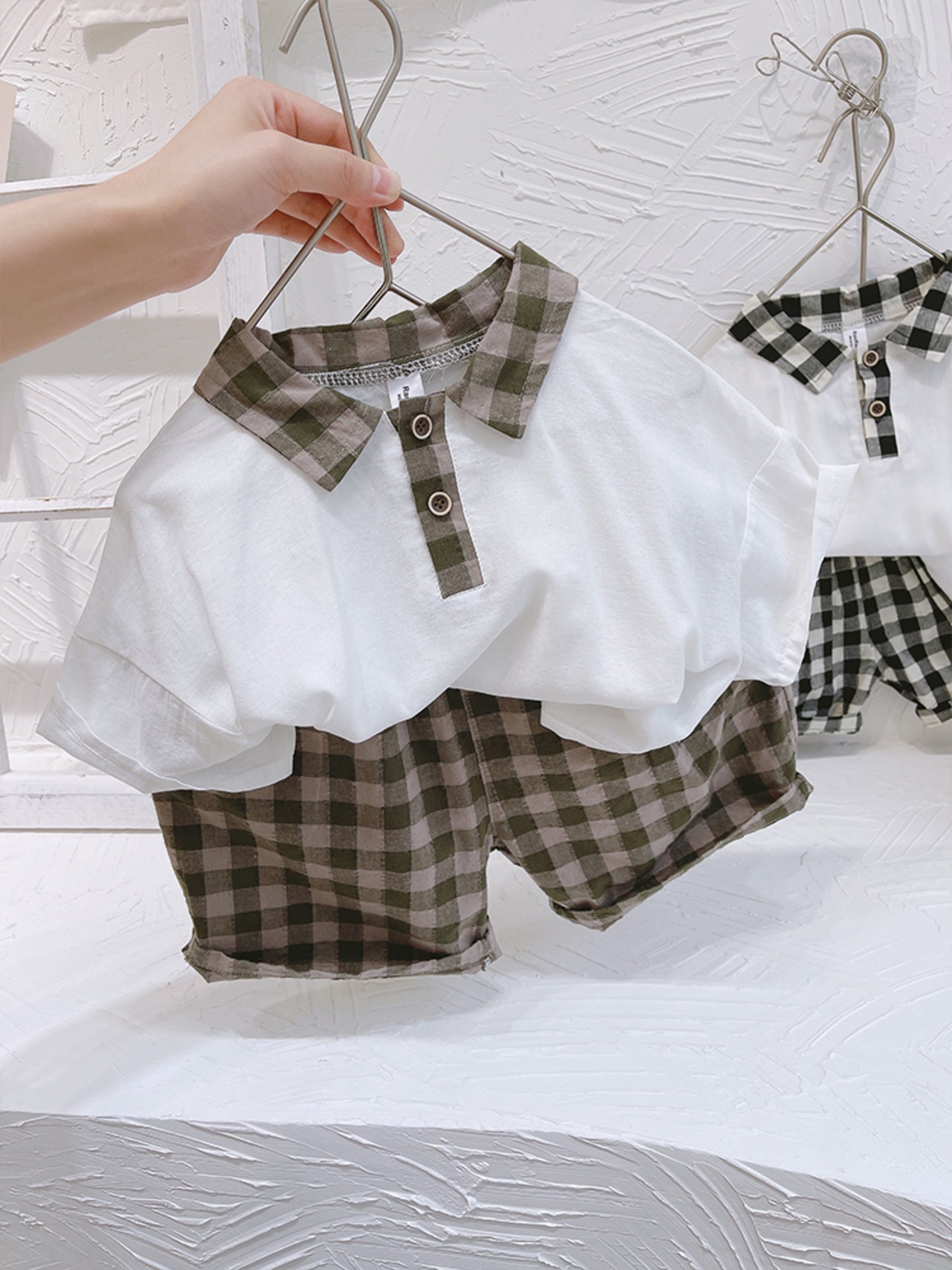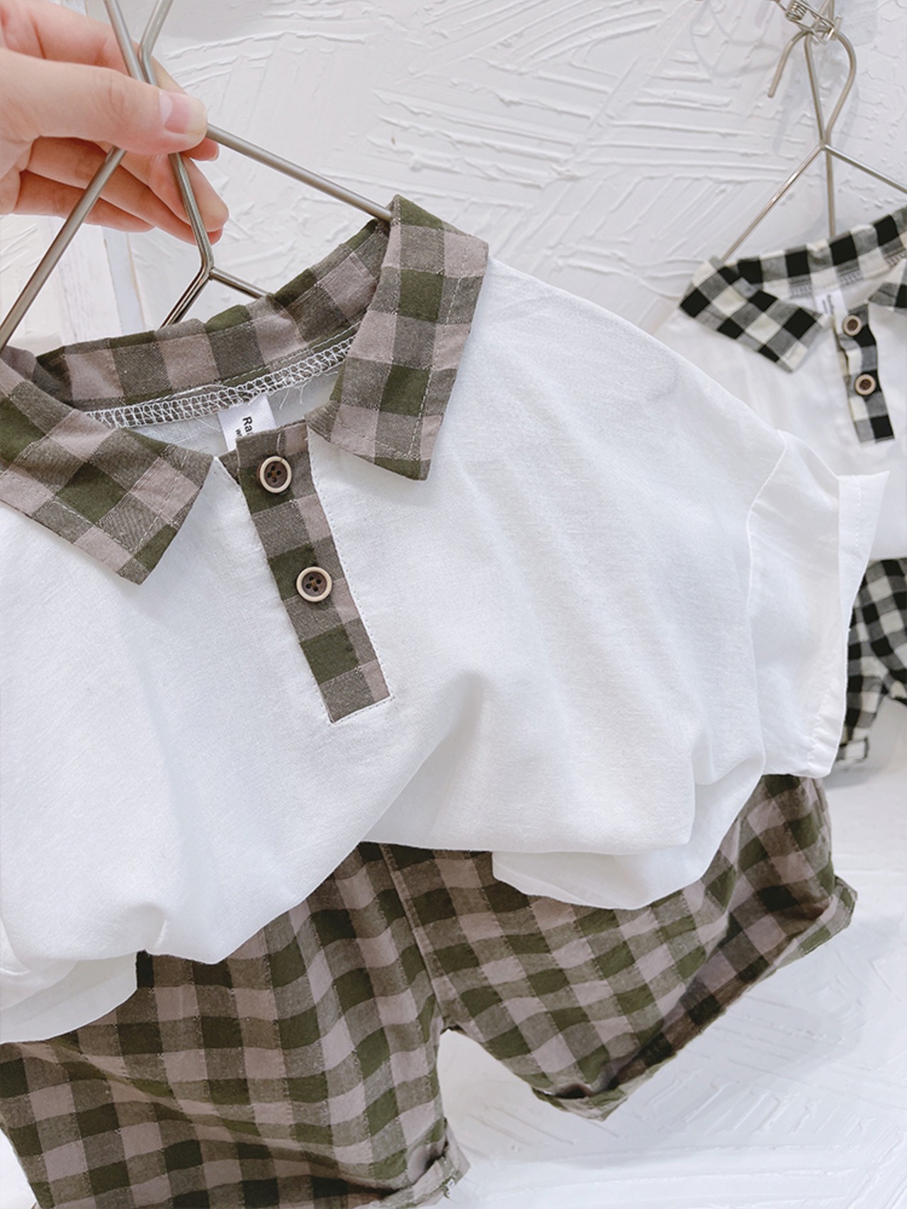 サマーホワイトシャツ 格子柄パンツ 夏物 8/3 mi0627046330242