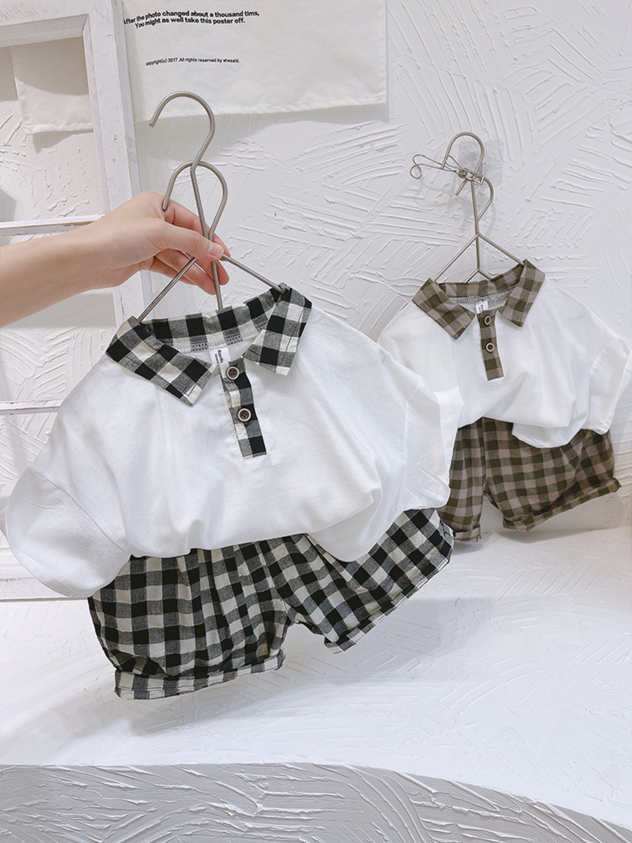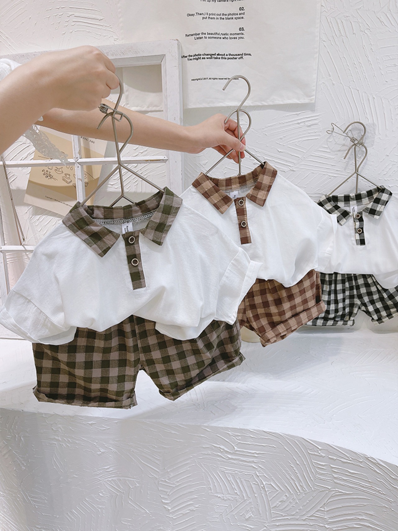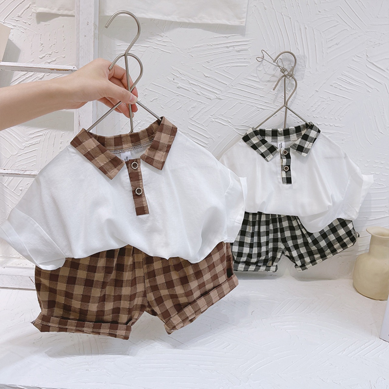 サマーホワイトシャツ 格子柄パンツ 夏物 8/3 mi0627046330242