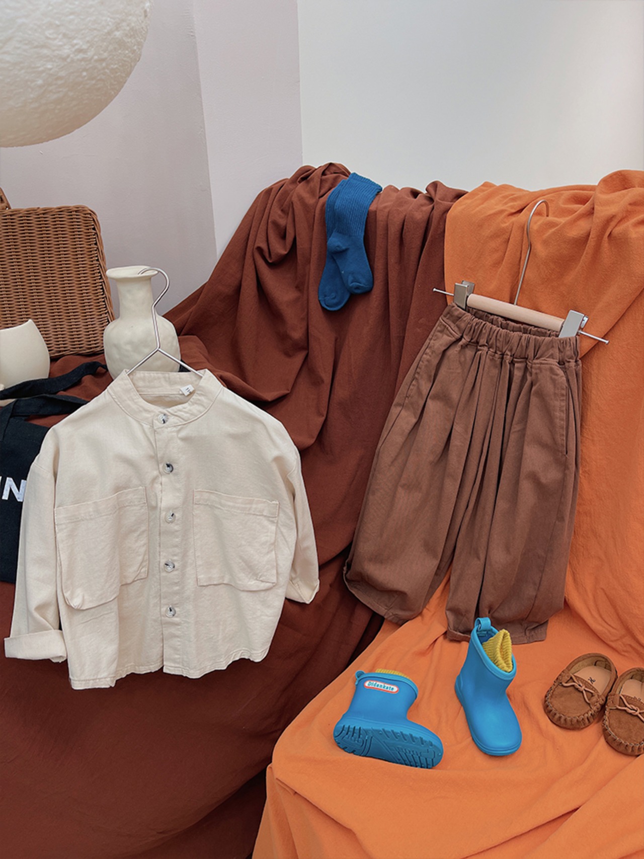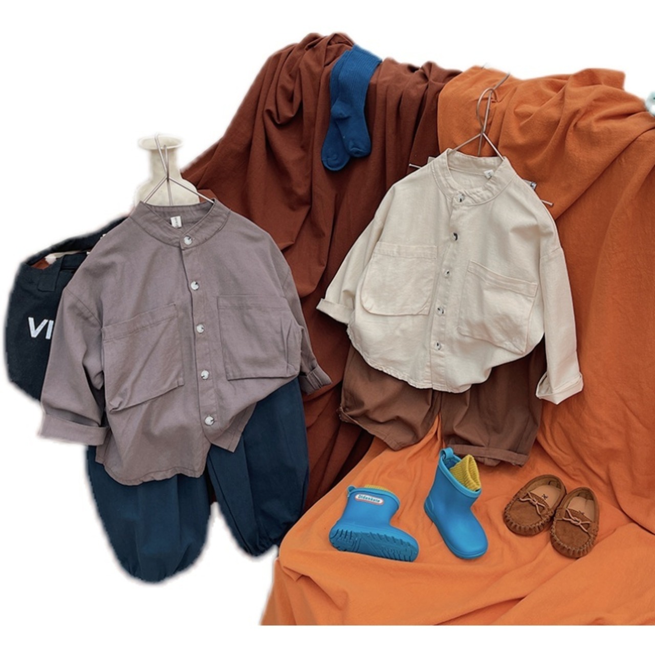カラーシャツ ルーズソリッド ポケットブラウス オータム ロング コットン 秋物 ソリッドカラー 8/3 mi064915470231