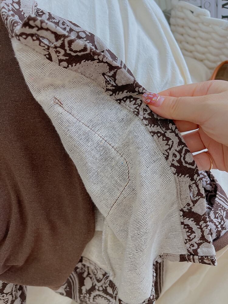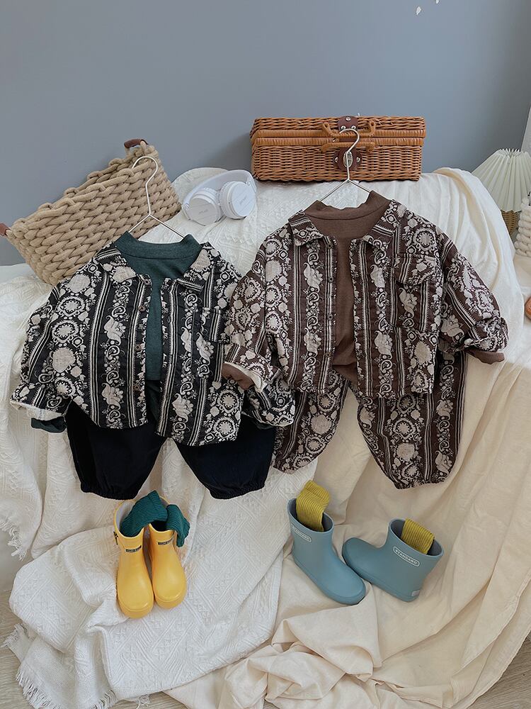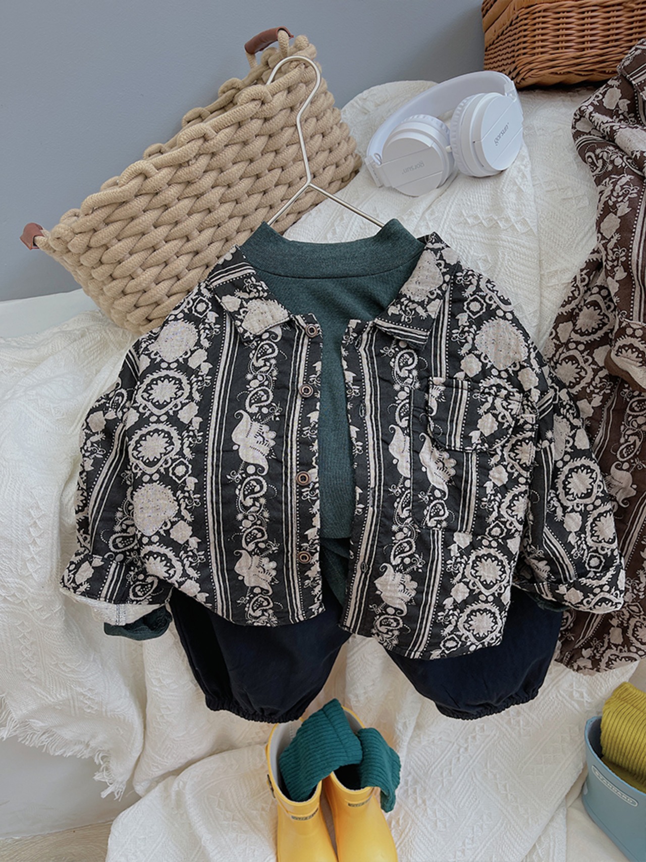 スタンダードプリント柄ポケットシャツ ルーズオータム ロング コットン レトロ 秋物 8/3 mi0676105954406
