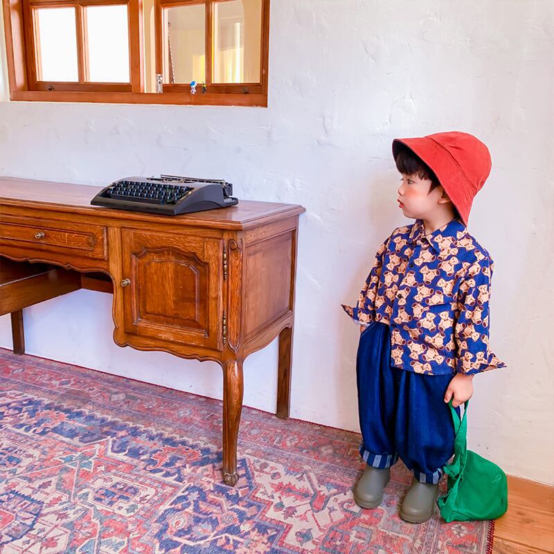 シャツ ブループリント柄オータム ロング コットン 秋物 8/3 mi0687918485410