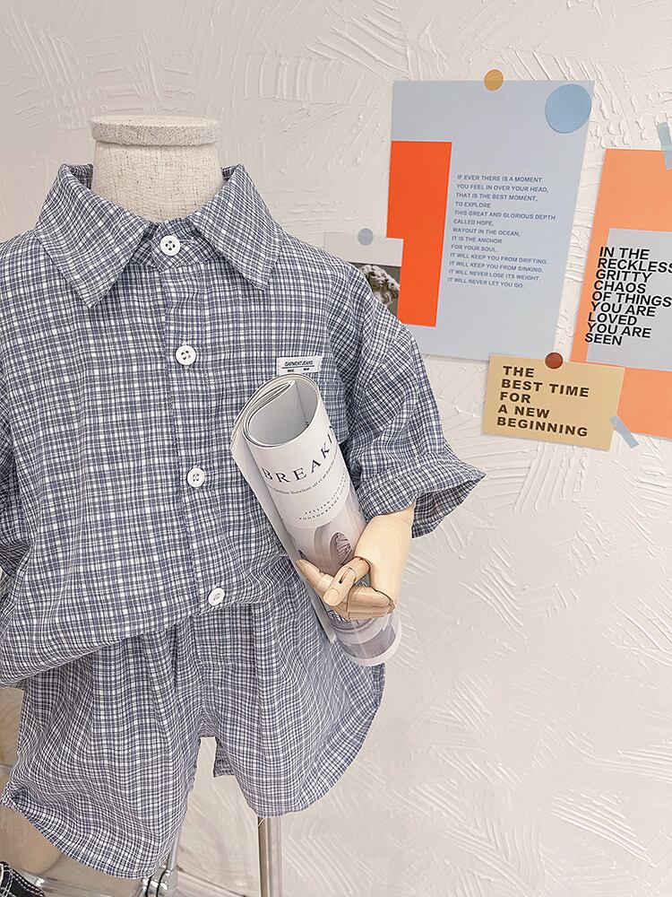 サマー薄手ルーズ格子柄ショーツ スリーブシャツ レディース 夏物 ブルマー 2セット 8/3 mi0685540998853