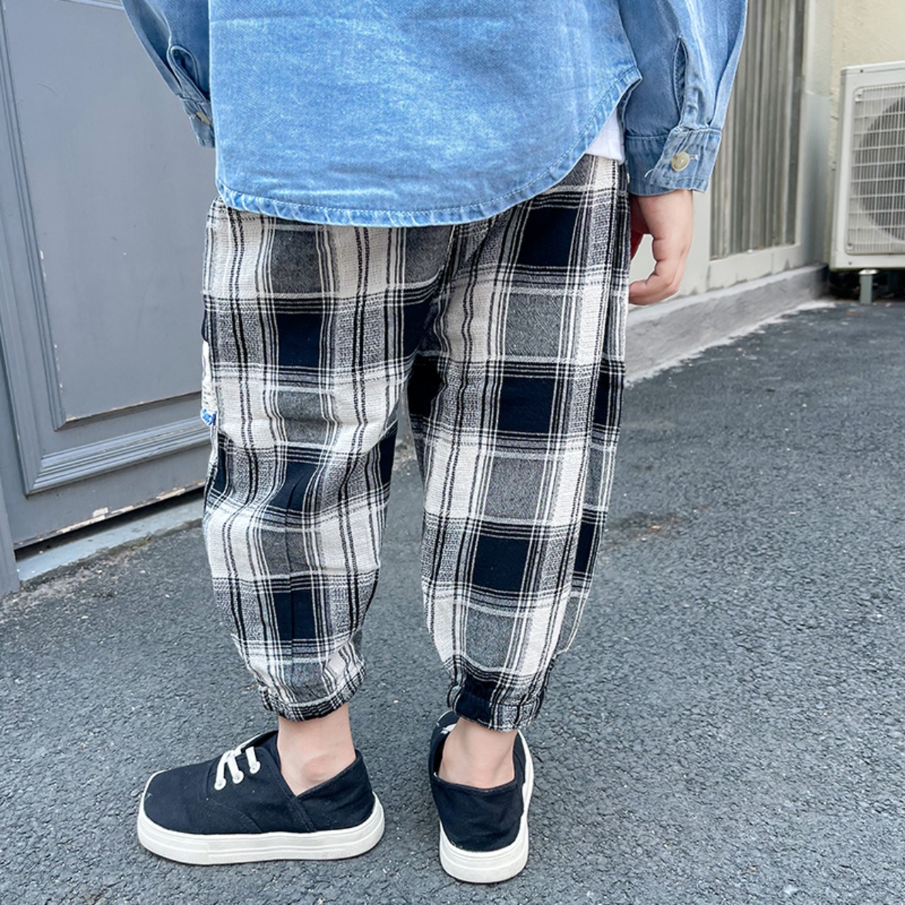 スタンダード格子柄カジュアルパンツ 薄手オータム コットン レトロ 秋物 8/3 mi0654563733933