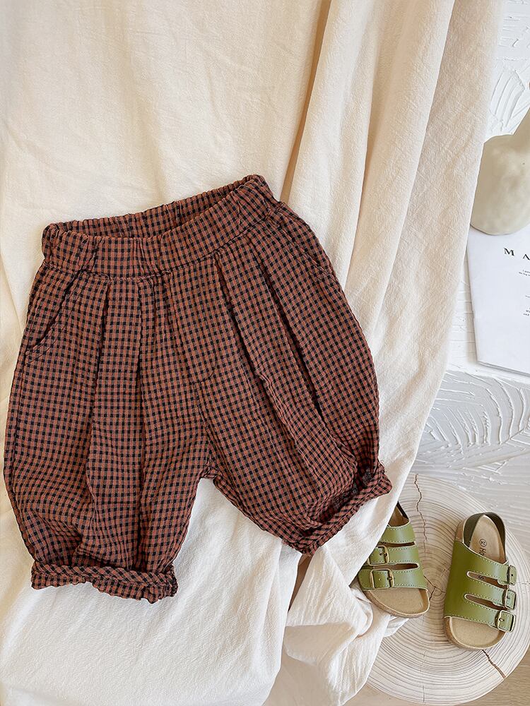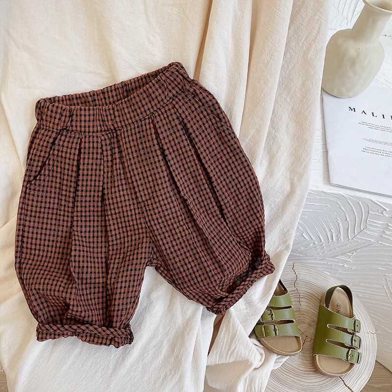 スタイルブラック格子柄ショーツ ルーズカジュアルパンツ コットン ブルマー 8/3 mi0688793724727