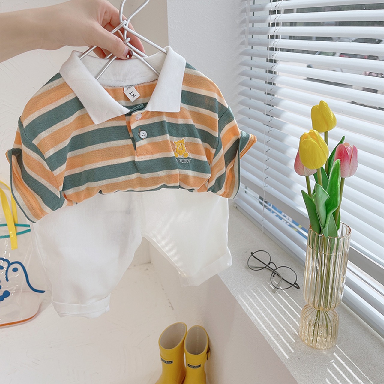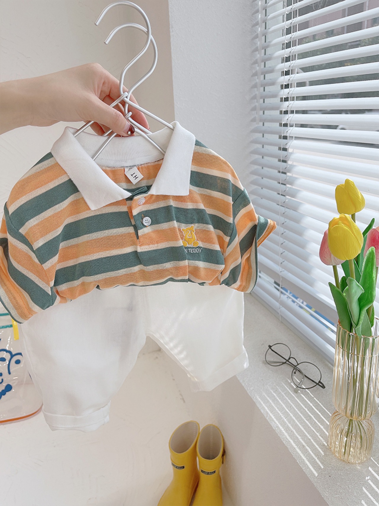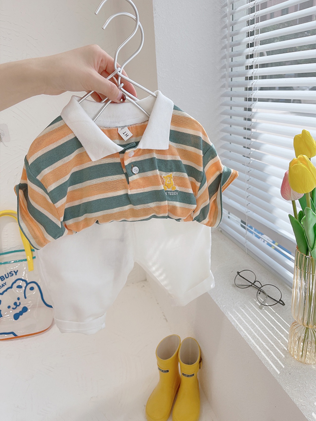 サマーストライプシャツ Tシャツ カラープリントルーズ コットン 夏物 8/3 mi0630916678136