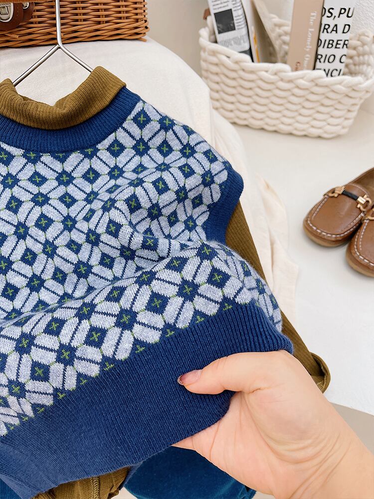 スタイルオータムラウンドネックプルオーバー プリントスタンダードニットセーター レトロ 秋物 Oネック 8/3 mi0637424365295