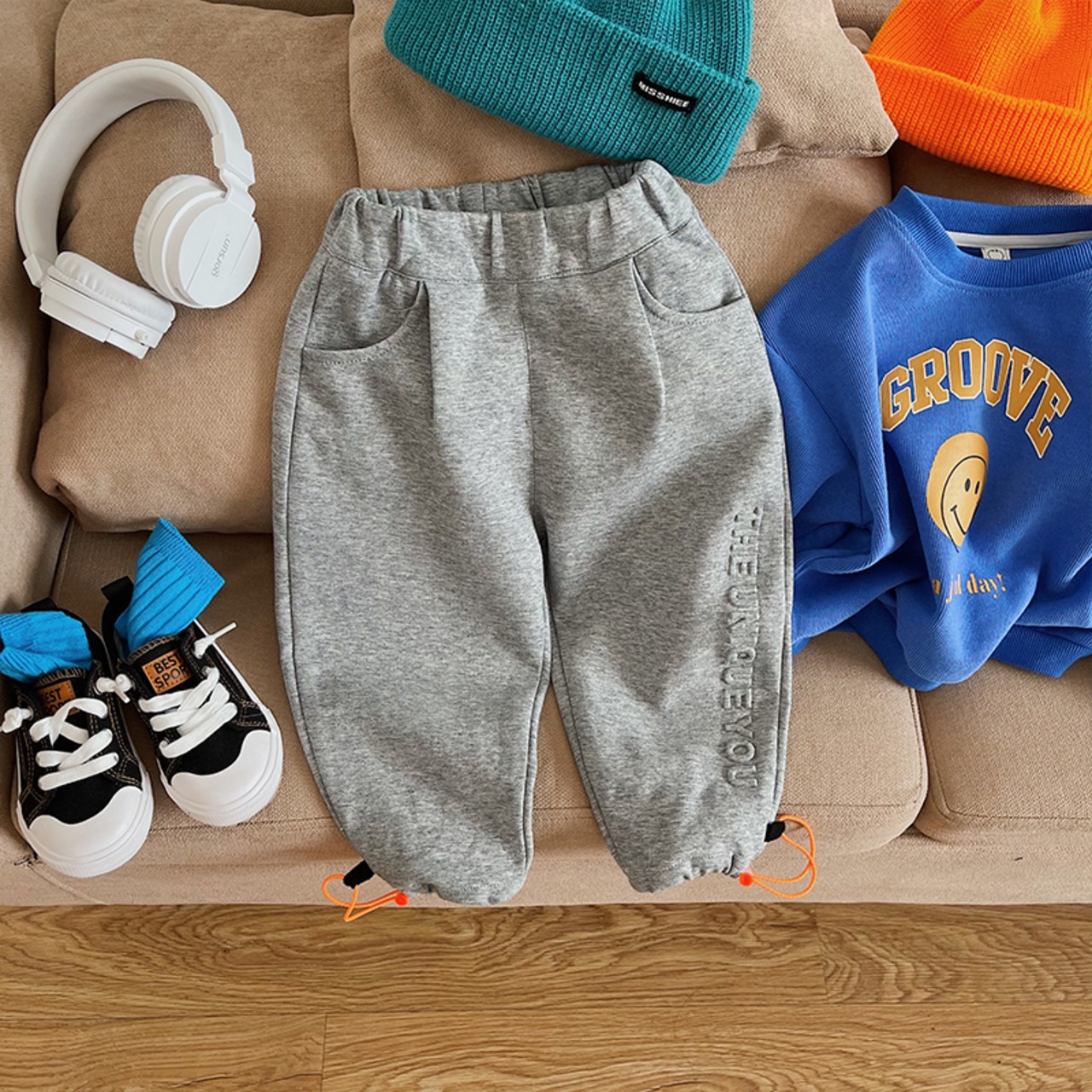 色:グレーパンツ,黒いズボン