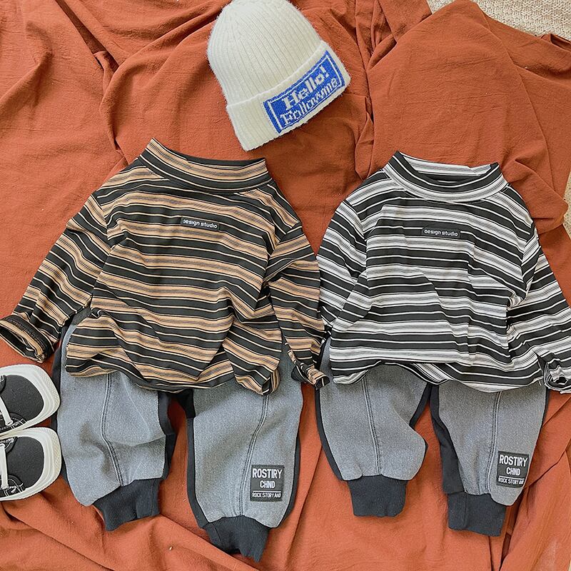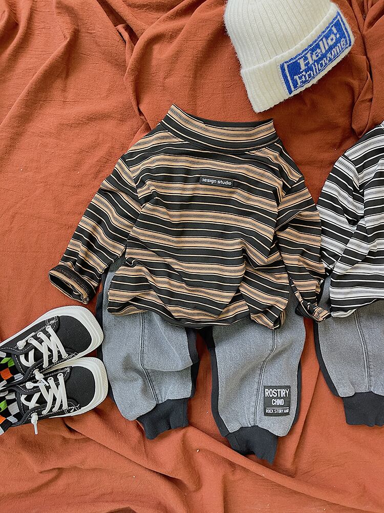 ブラックストライプシャツ オータムラウンドネックTシャツ ロング 秋物 Oネック 8/3 mi0684885706708