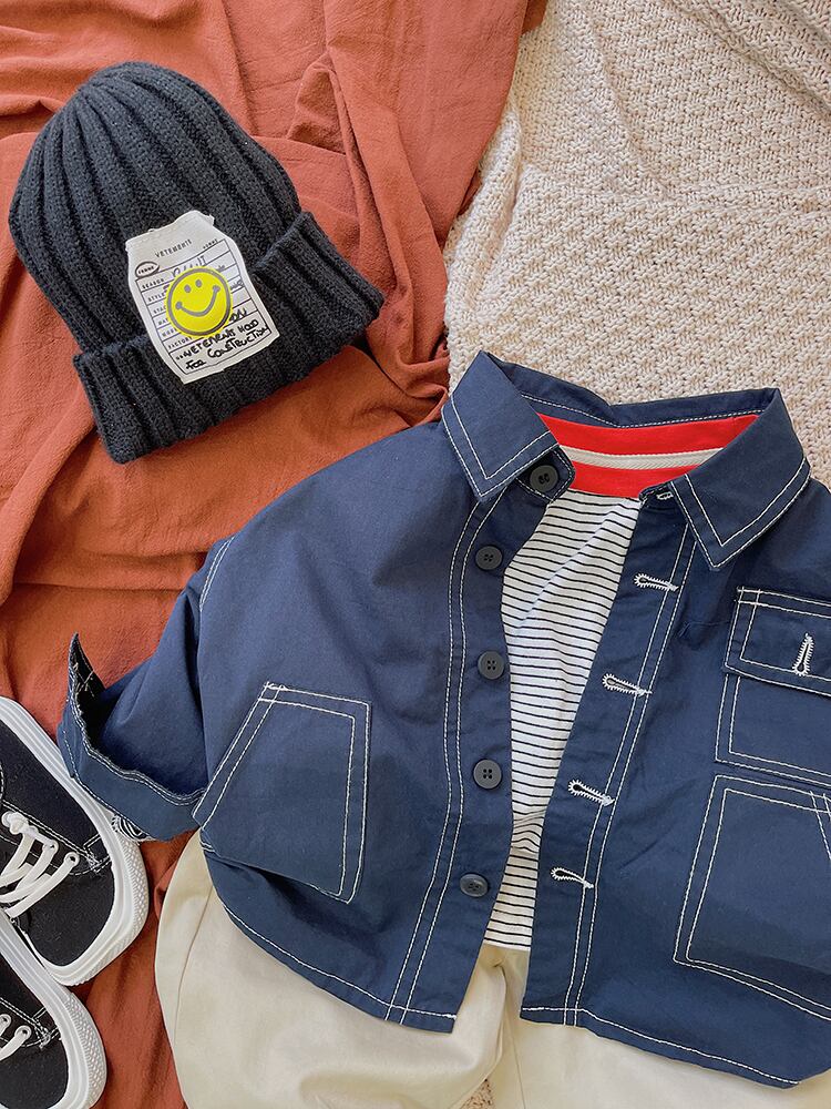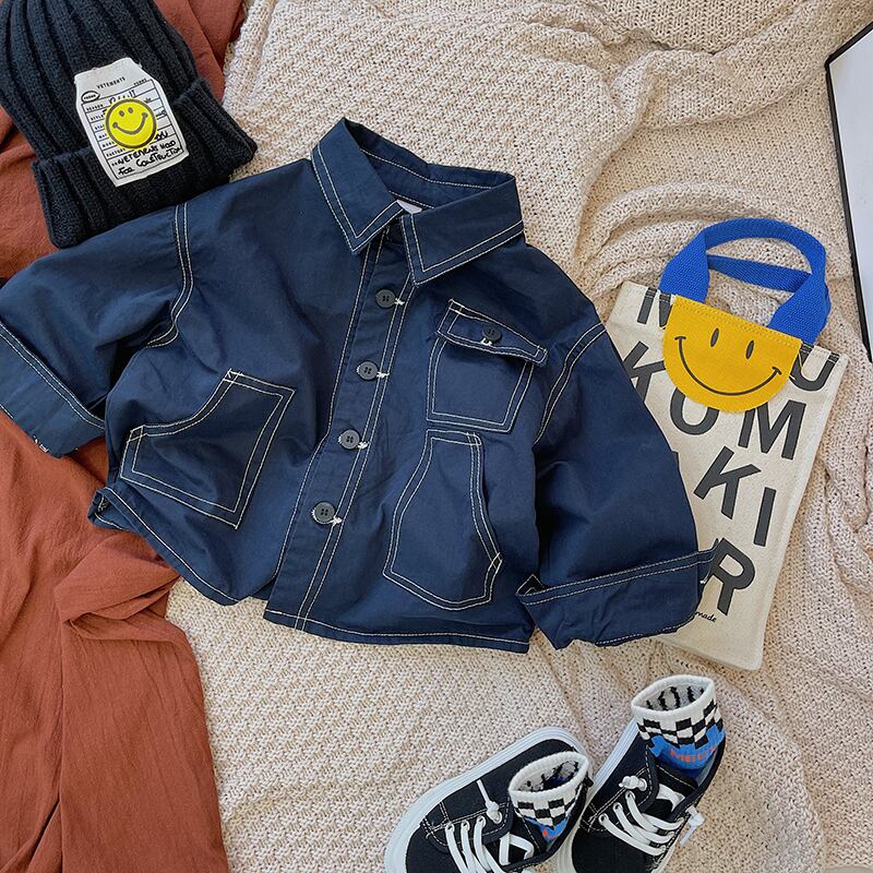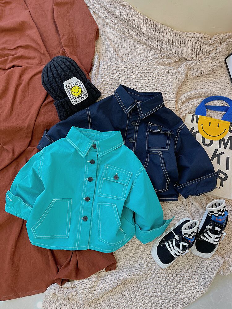 オータムブルーボタンカーディガンジャケット ポケットカジュアルシャツ コットン 秋物 8/3 mi0675299781685