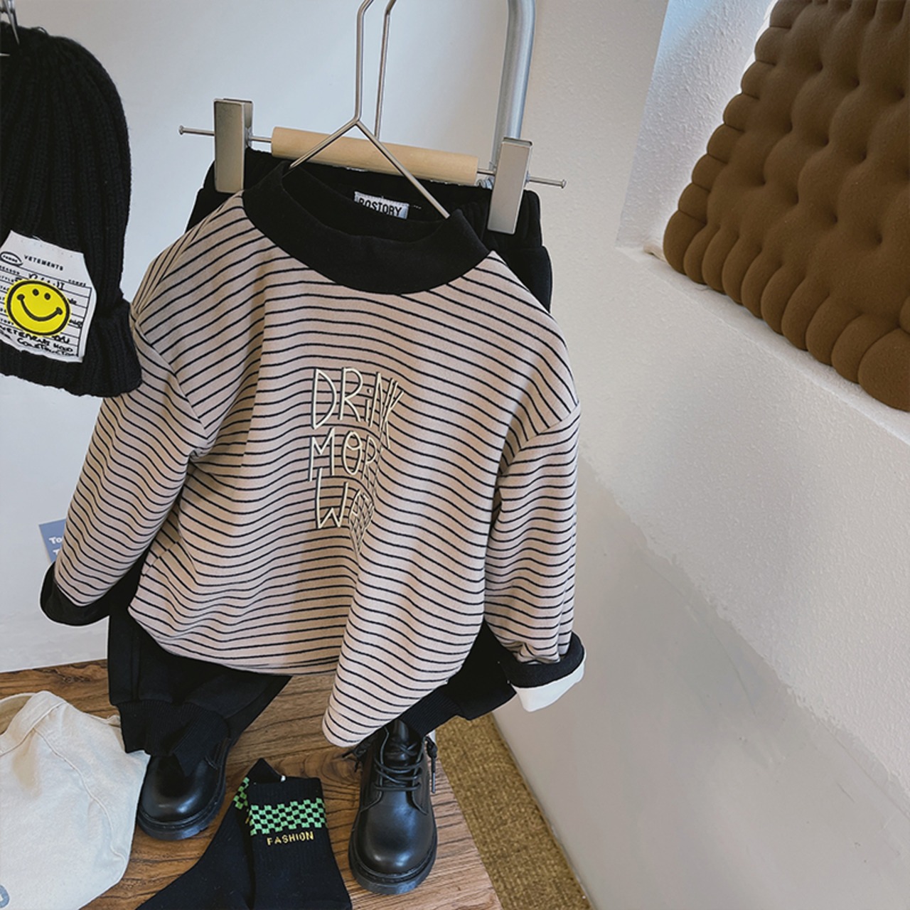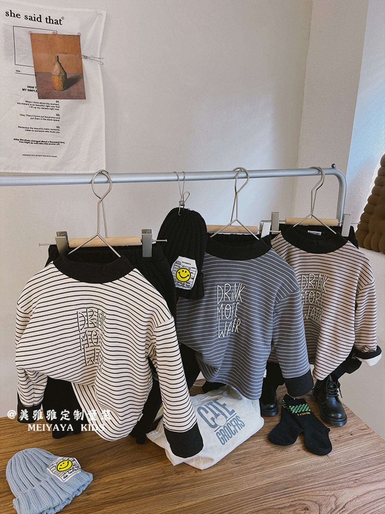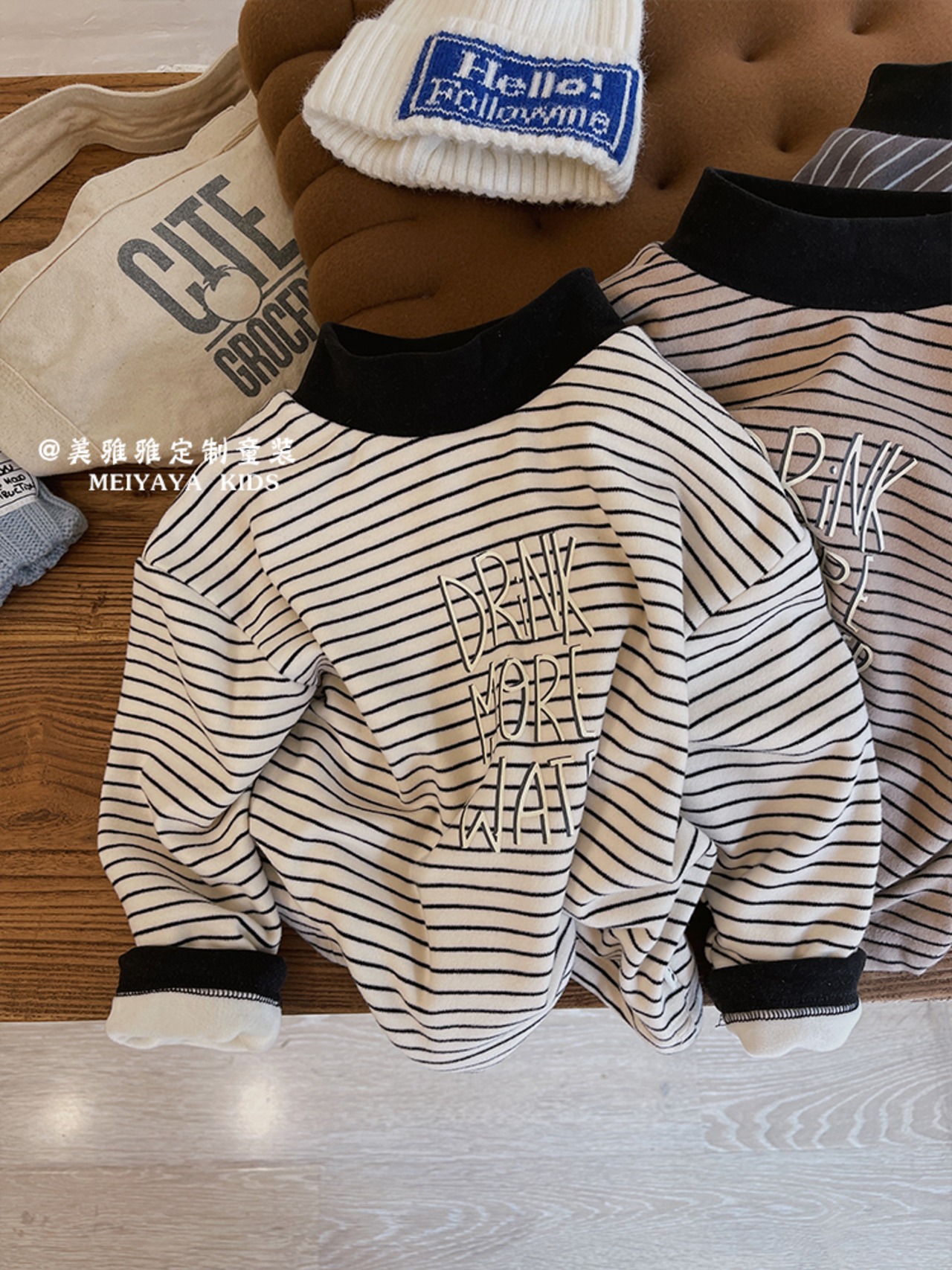 カラーラウンドネックストライプベルベットウィンター ロング 冬物 Oネック Tシャツ 8/3 mi0621202938888