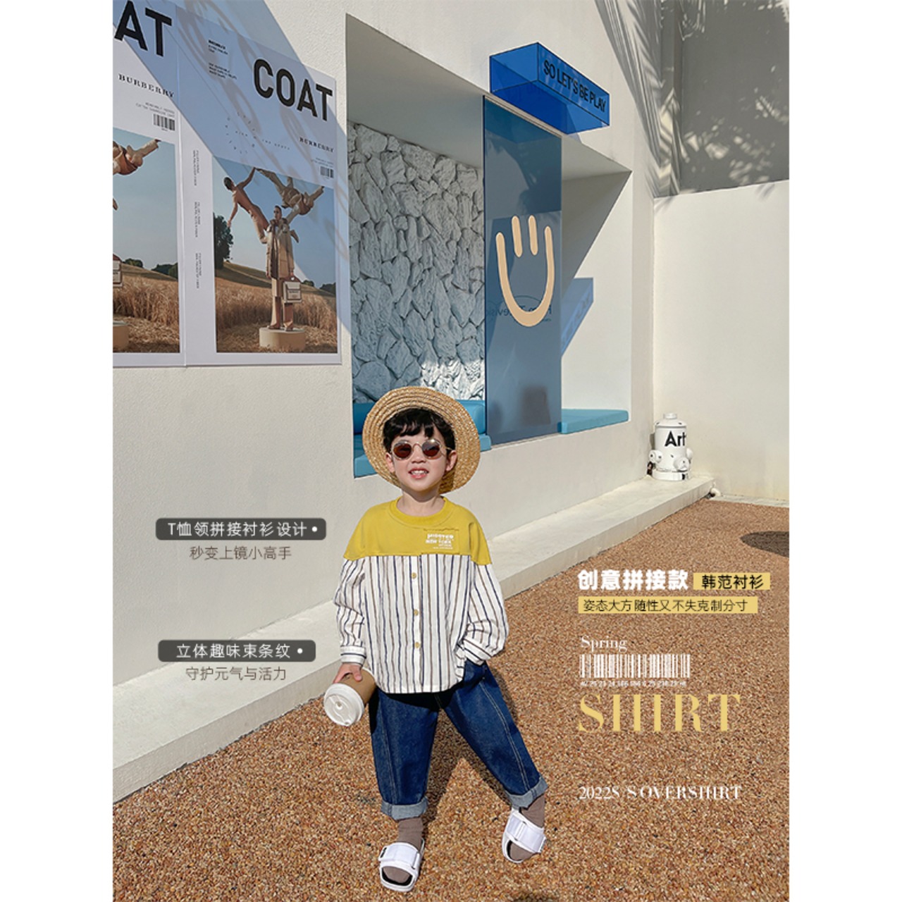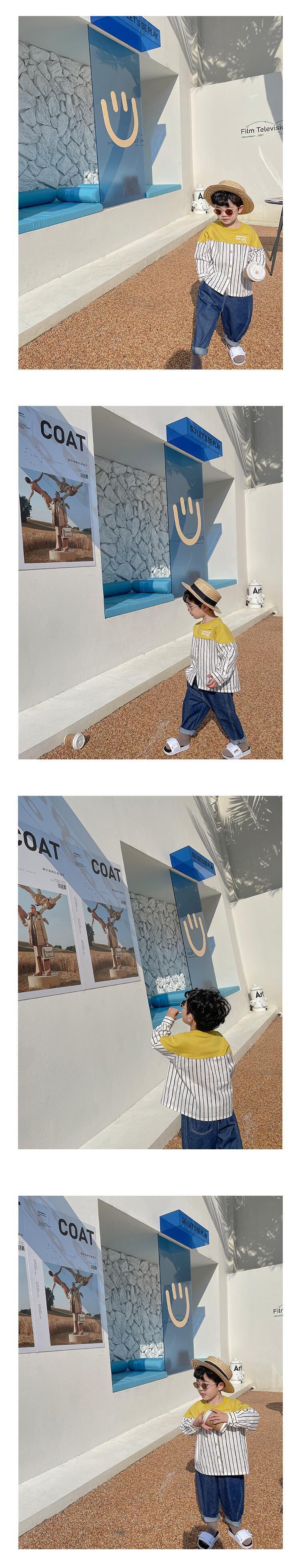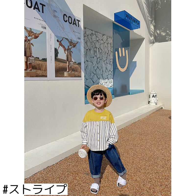 カジュアルシャツスプリングカラーストライプトップス ロング 春物 ステッチ 9/24 秋冬 mi0682233392156
