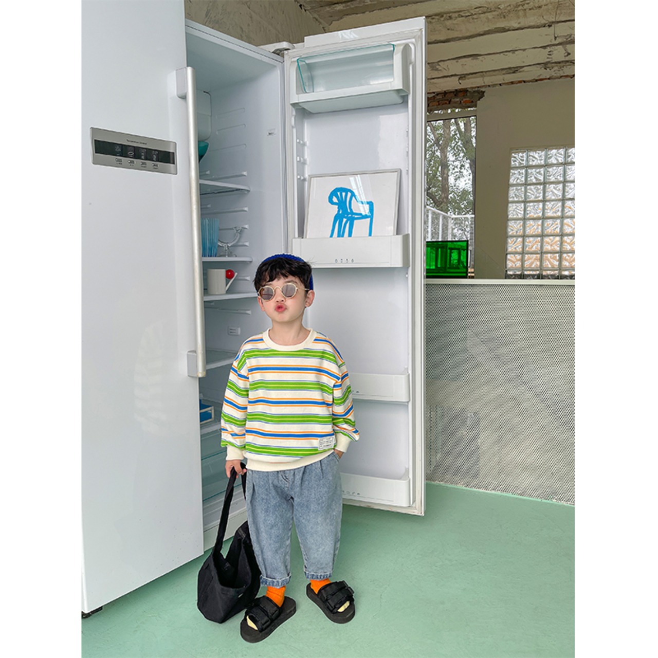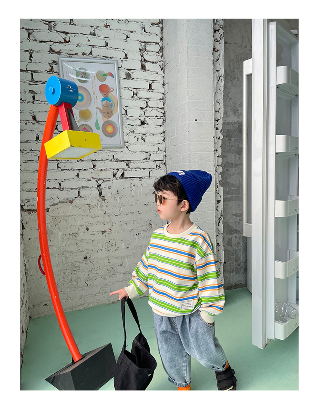 スプリングストライプセーター ラウンドネックシャツ ルーズカジュアルトップス 春物 Oネック 9/24 秋冬 mi0624094616315