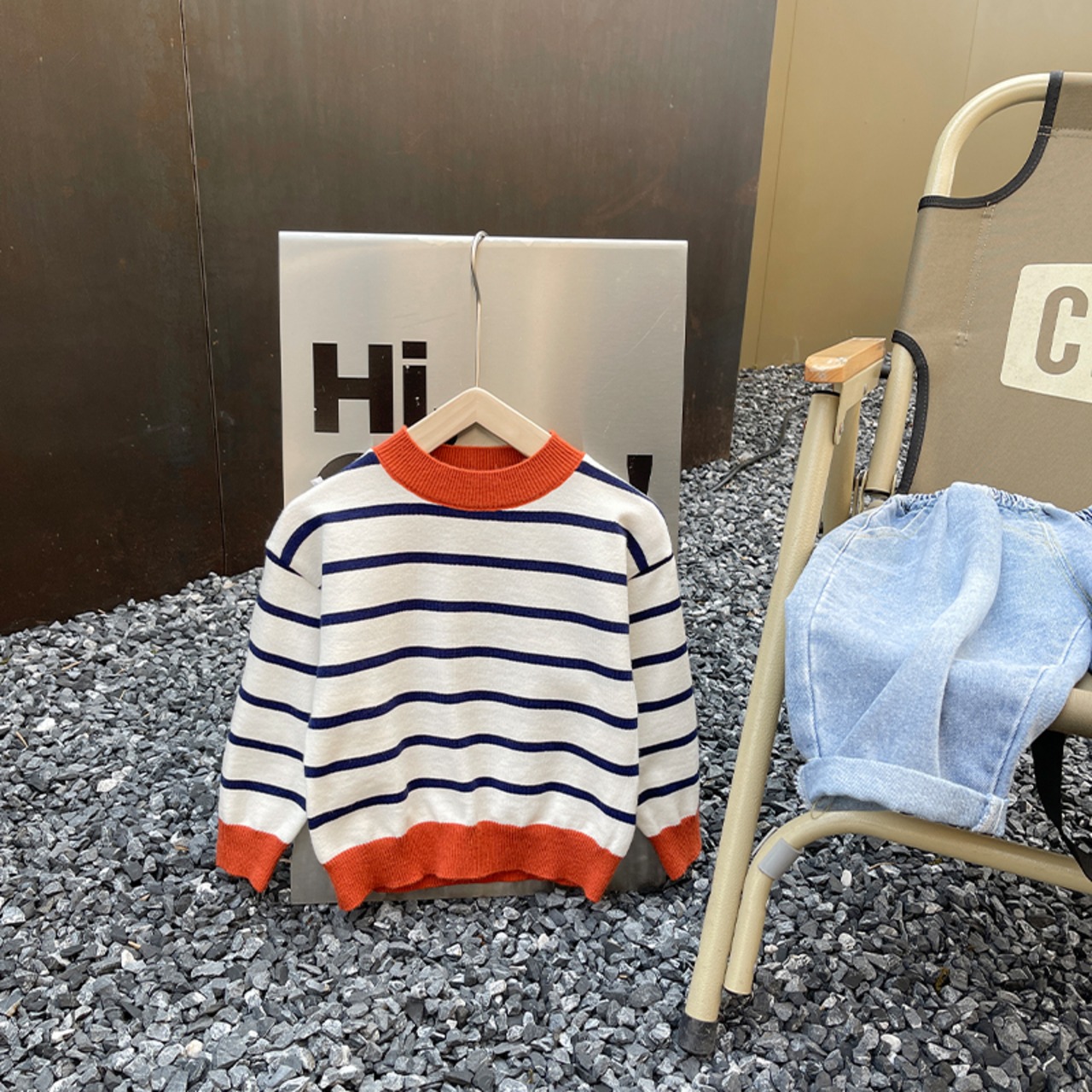 ストライプセーター スプリングスタイルラウンドネックプルオーバー ニットブラックホワイトトップス 春物 キッズ Oネック 9/24 秋冬 mi0673539077121