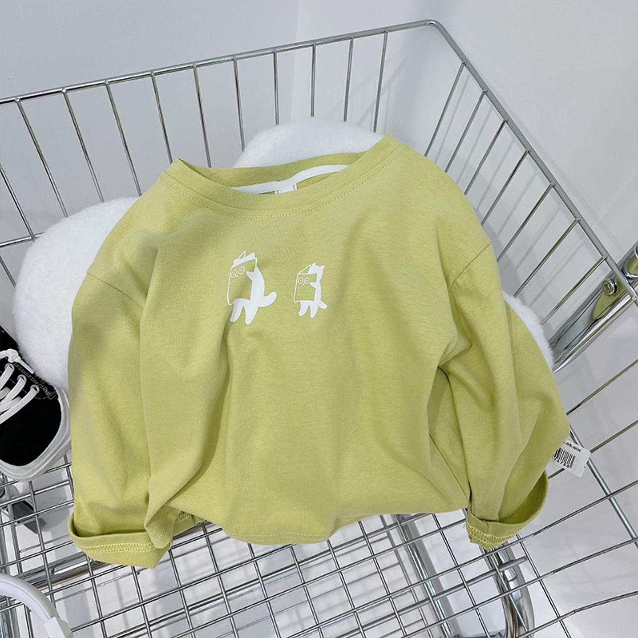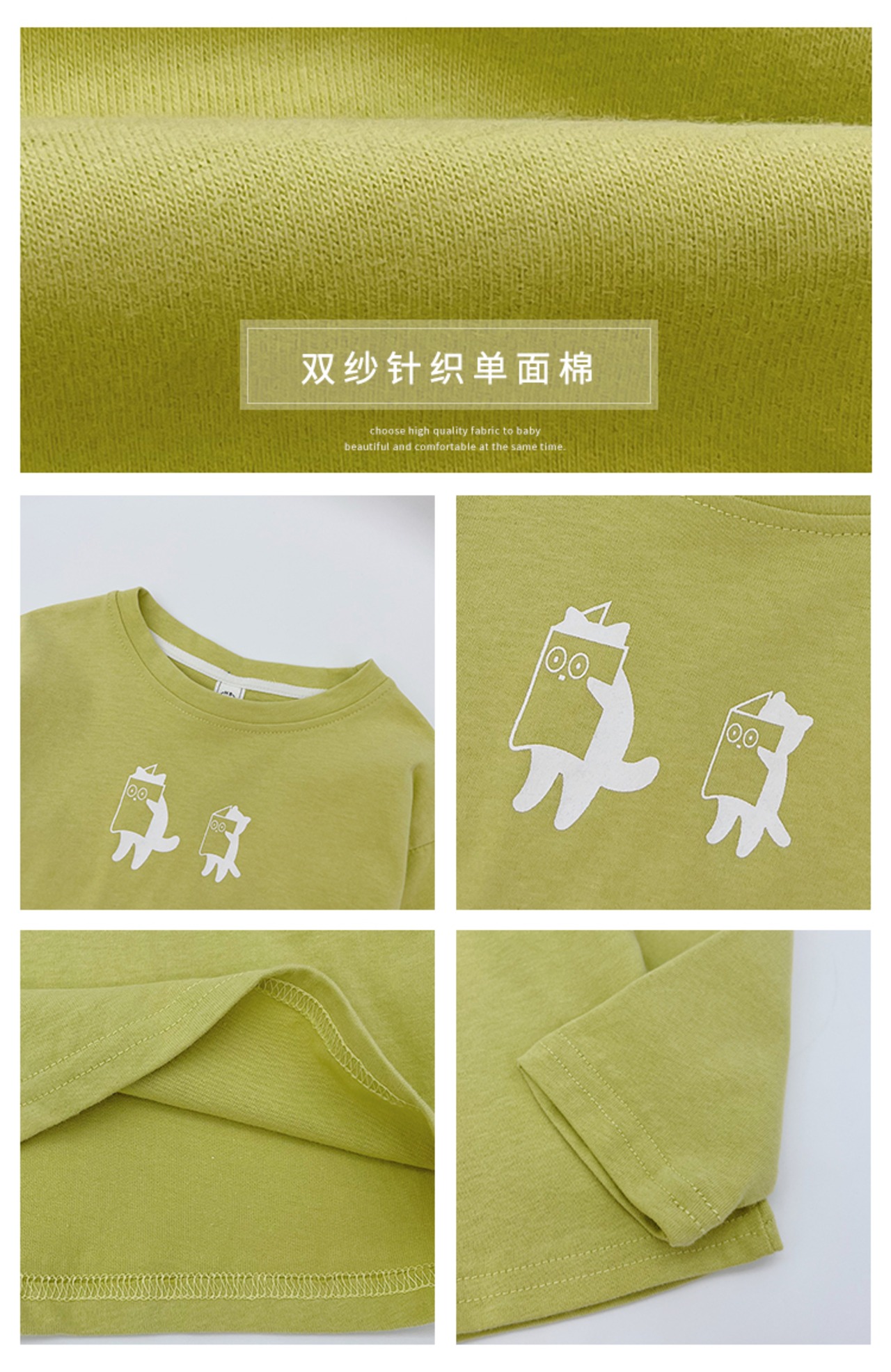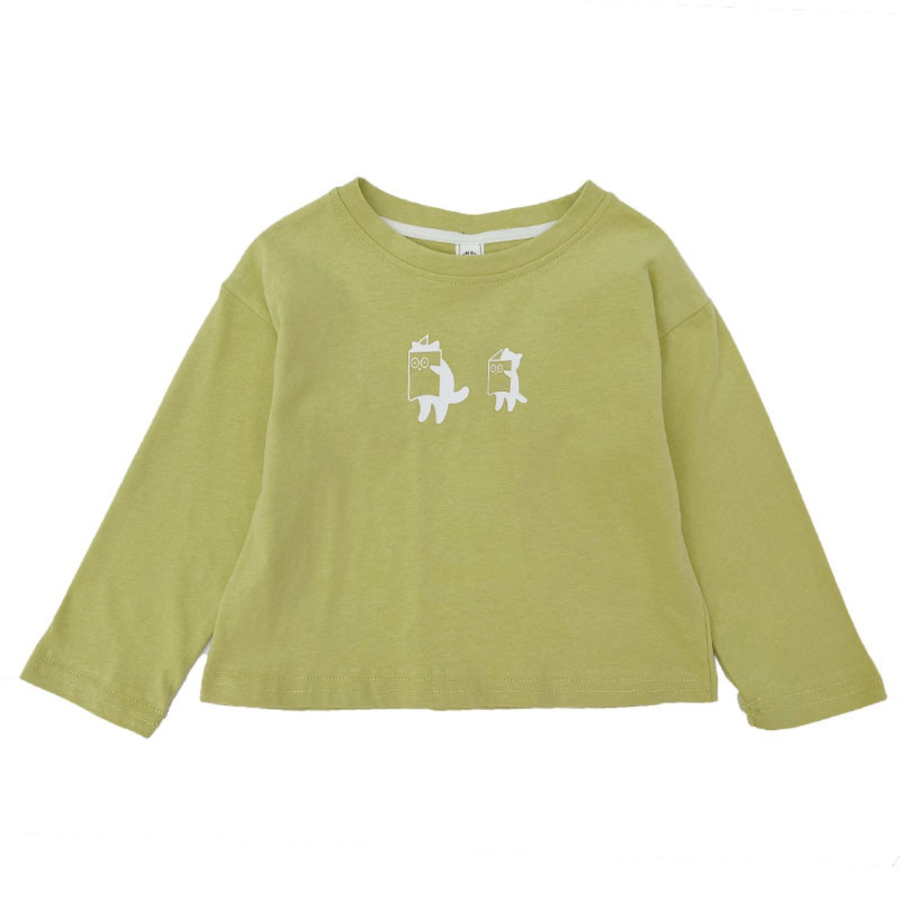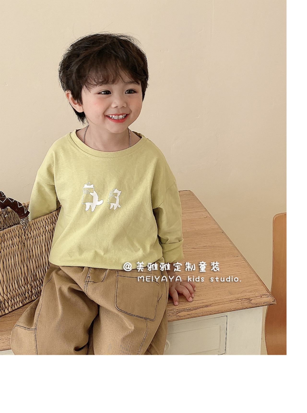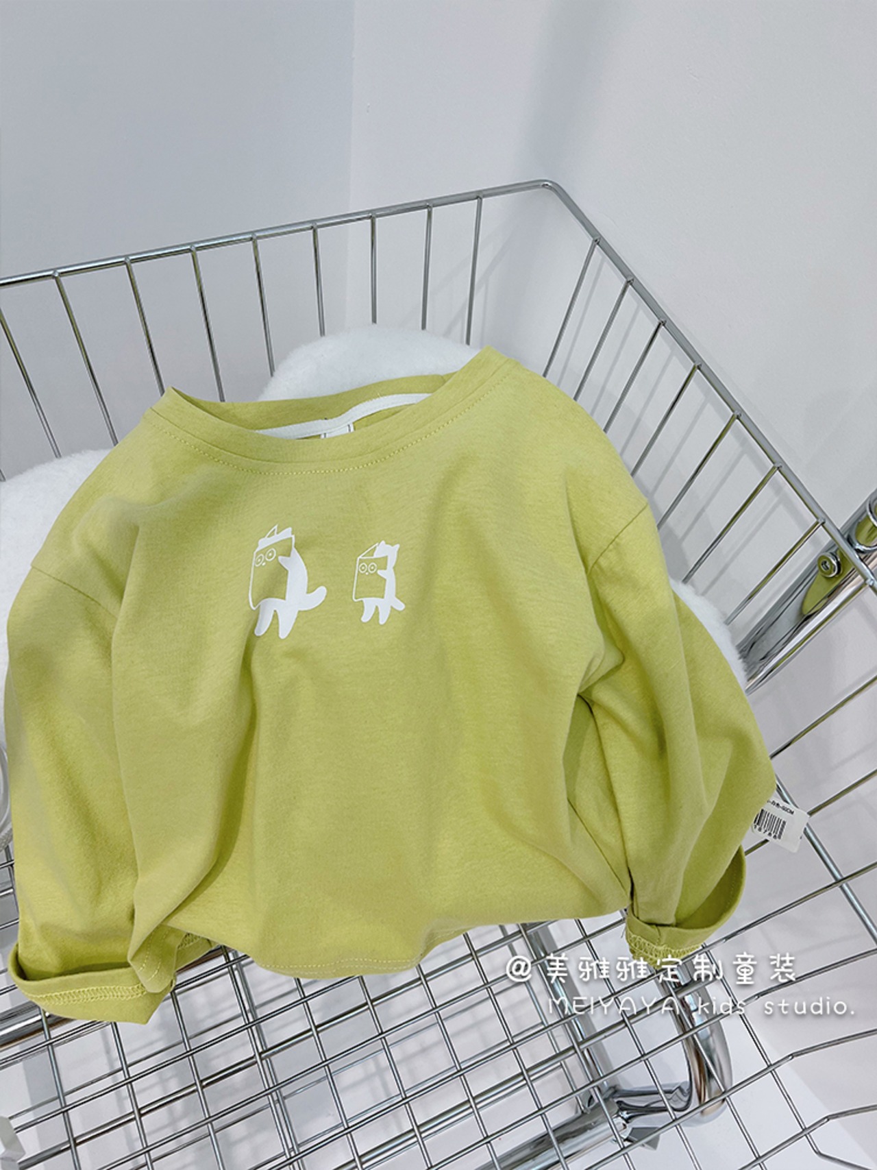 マスタードグリーンプリントシャツ ロング コットン 4/12 春夏 SS 子供服 韓国風 mi0680291105978
