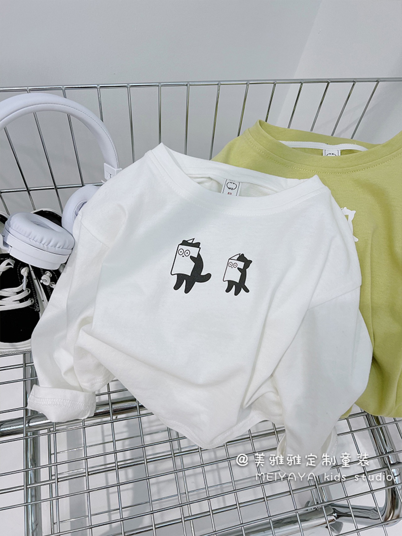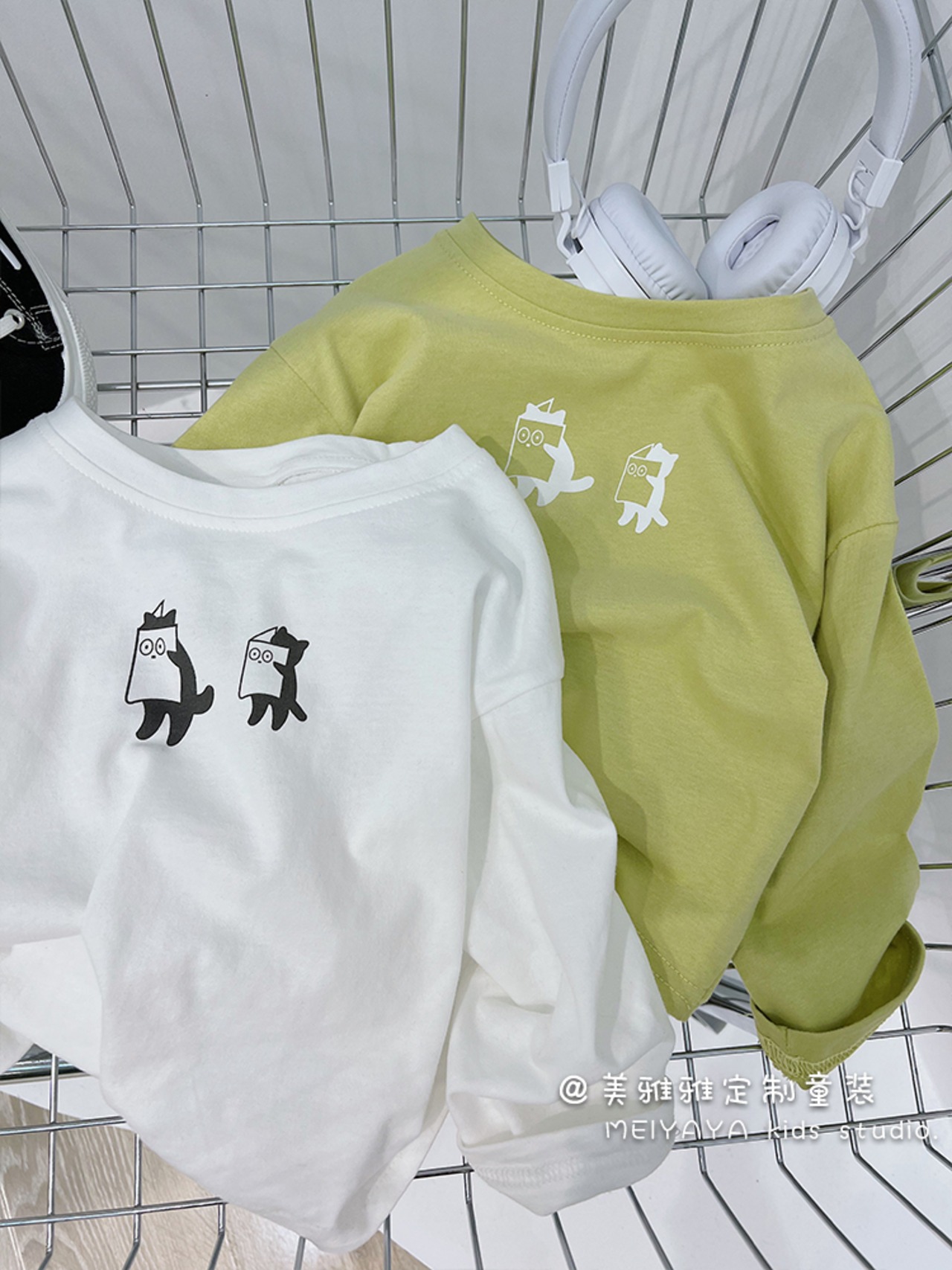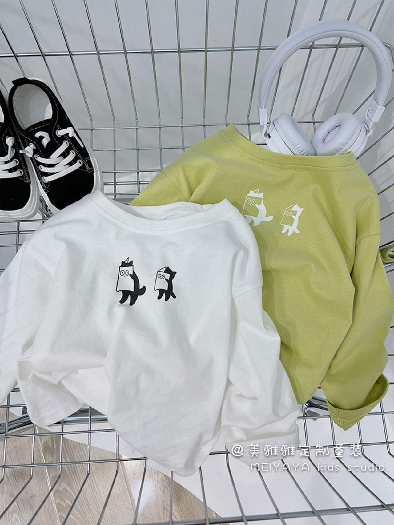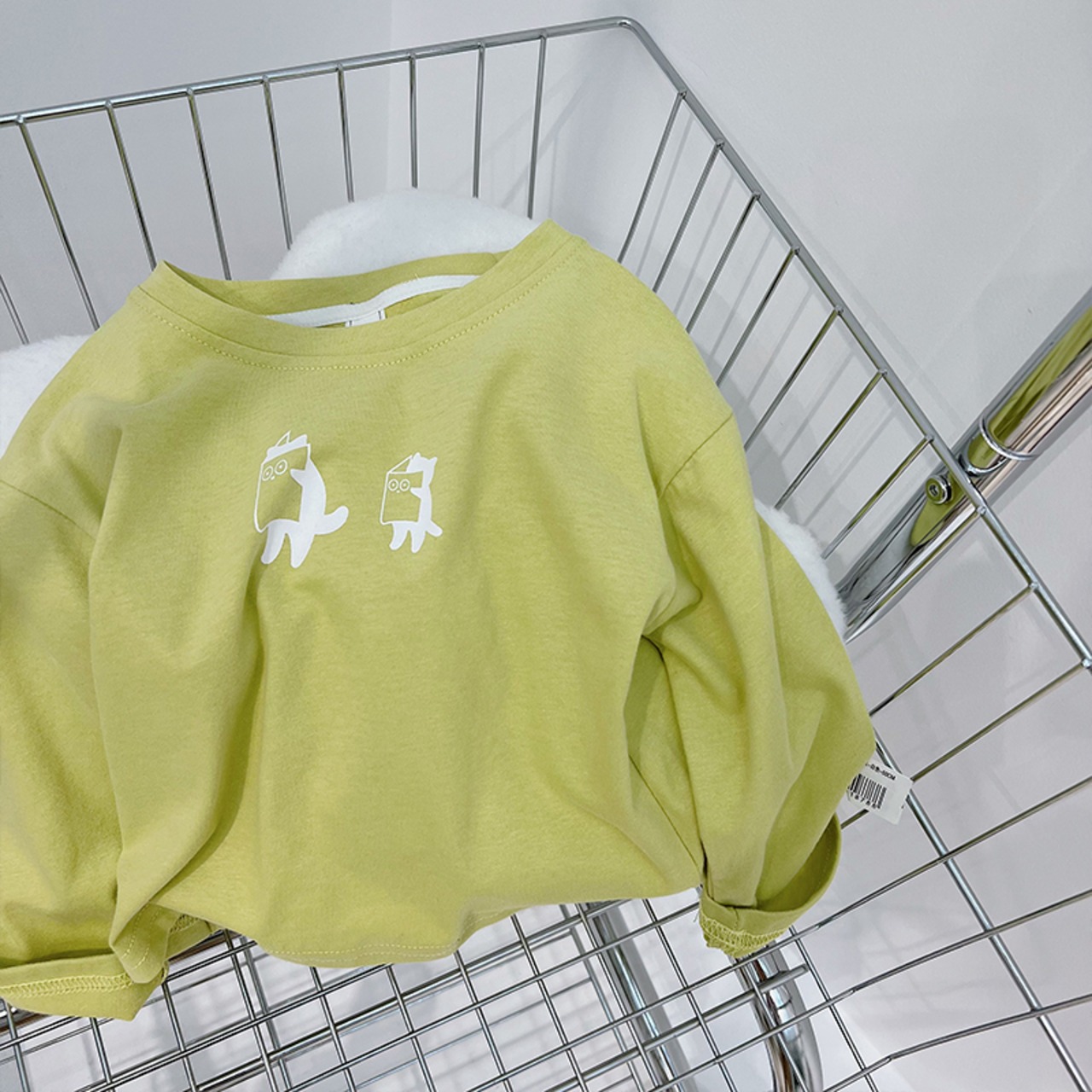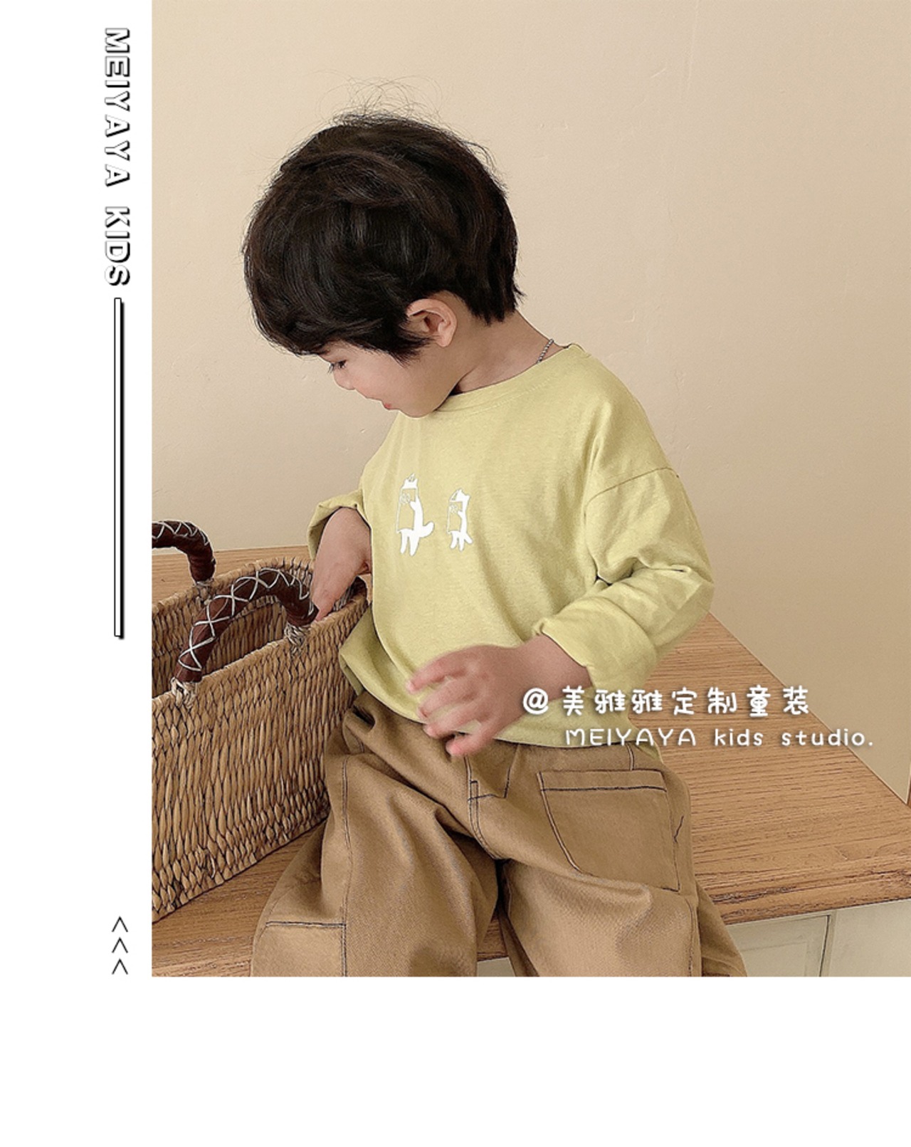 マスタードグリーンプリントシャツ ロング コットン 4/12 春夏 SS 子供服 韓国風 mi0680291105978