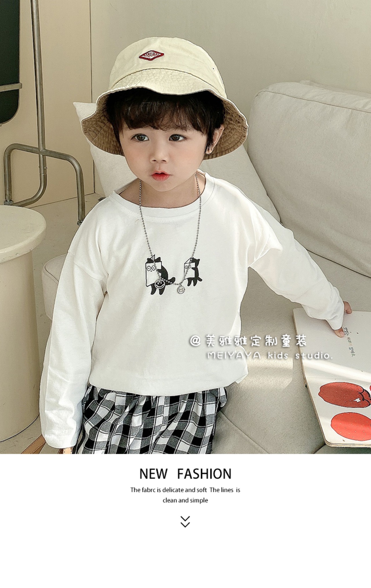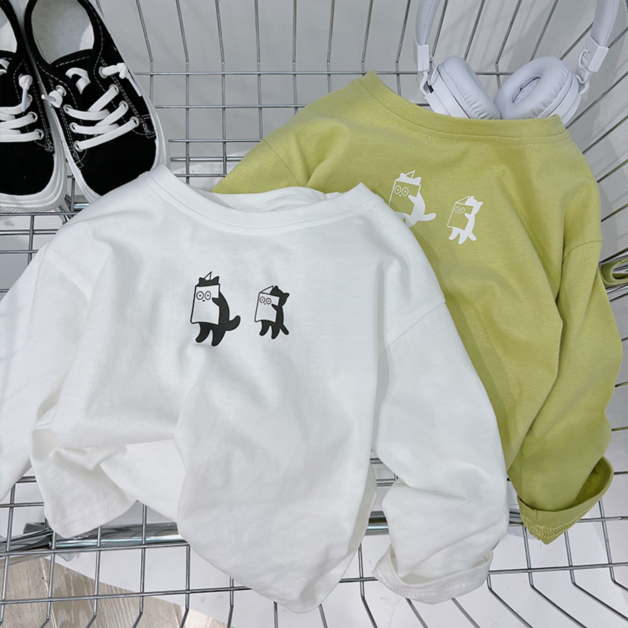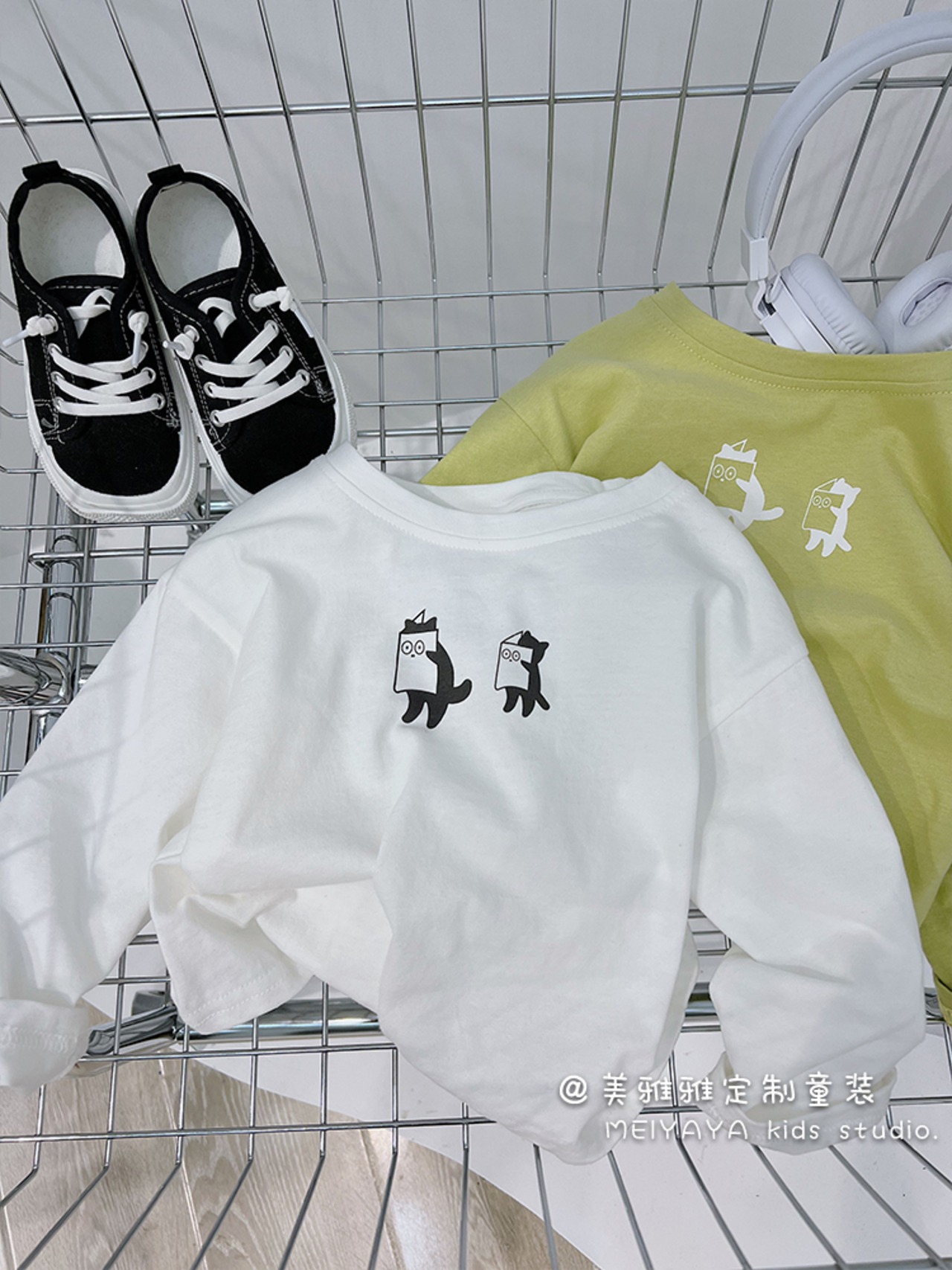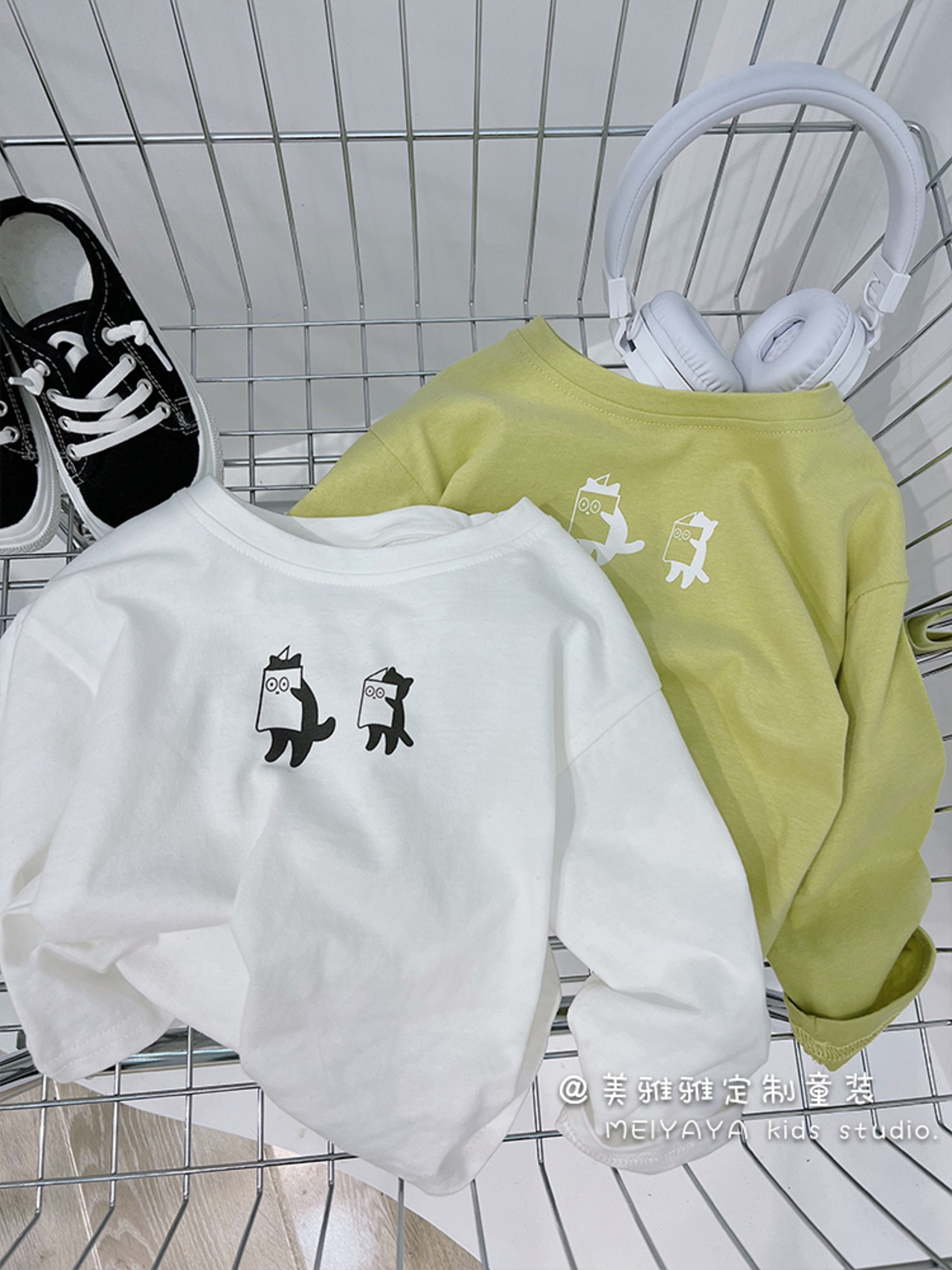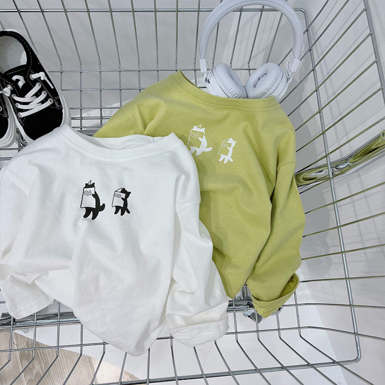 マスタードグリーンプリントシャツ ロング コットン 4/12 春夏 SS 子供服 韓国風 mi0680291105978