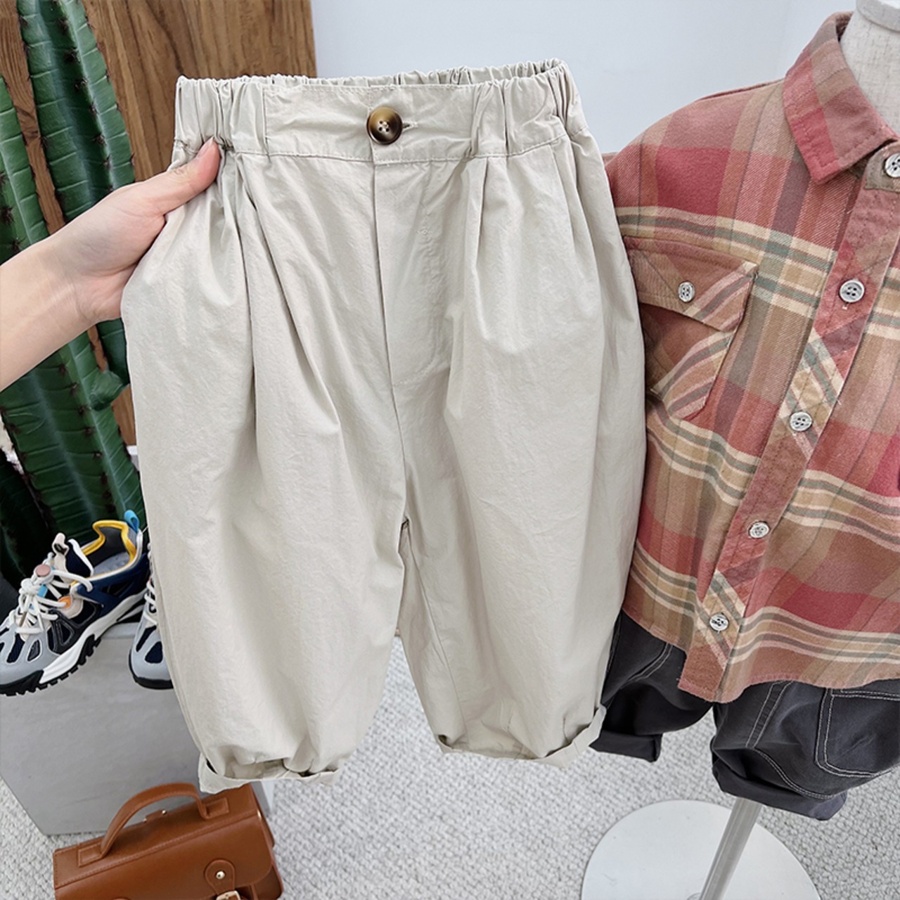 色:オフホワイトのパンツが入荷しました,チャコールグレーパンツスポット,オリーブグリーンパンツスポット