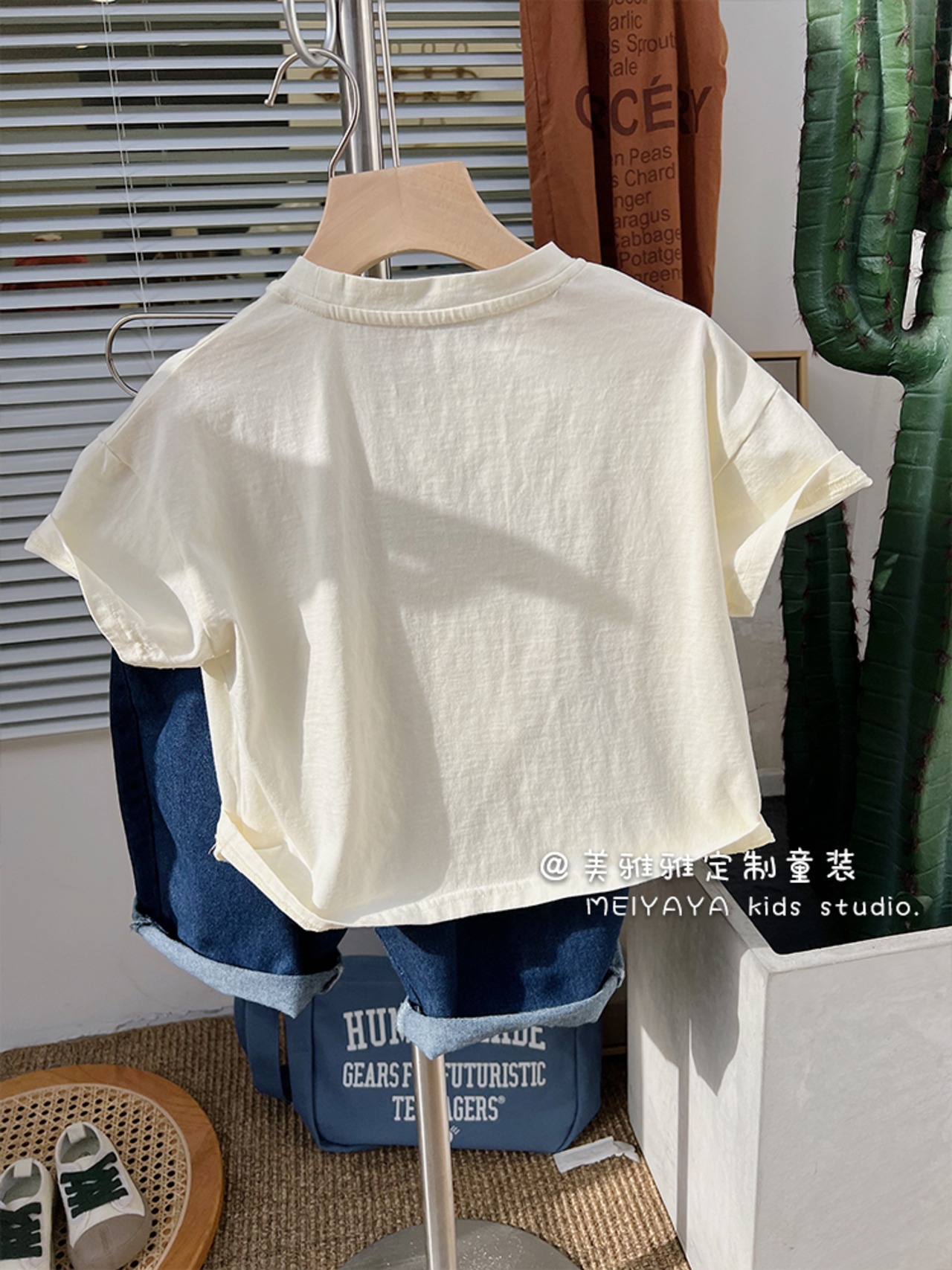 レッドホワイトトップス スタイルTシャツ 刺繍 4/12 春夏 SS 子供服 韓国風 mi0677359785513