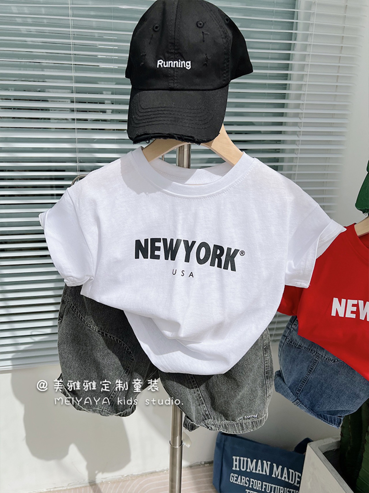スタイルサマーラウンドネックTシャツ ソリッド カラートップス コットン ストリート 夏物 Oネック ソリッドカラー 4/12 春夏 SS 子供服 韓国風 mi0669540656681