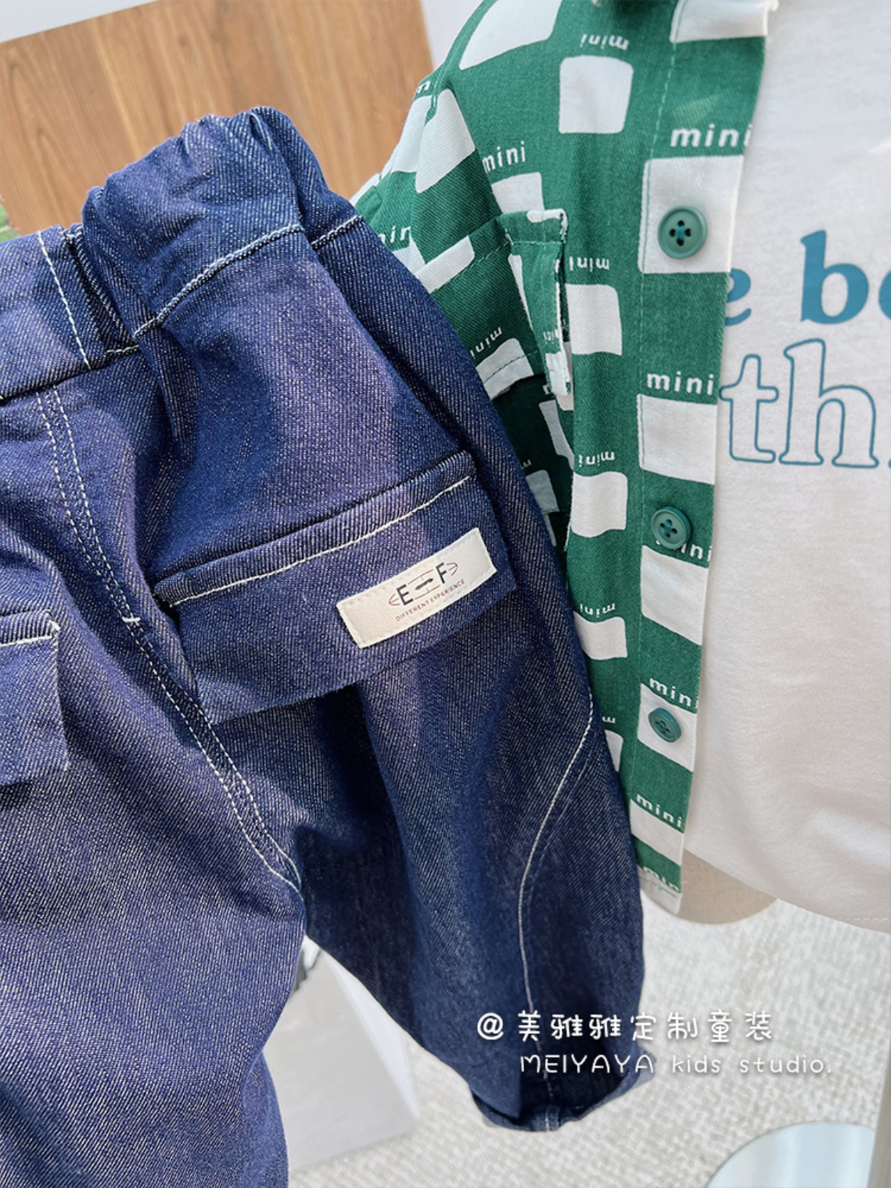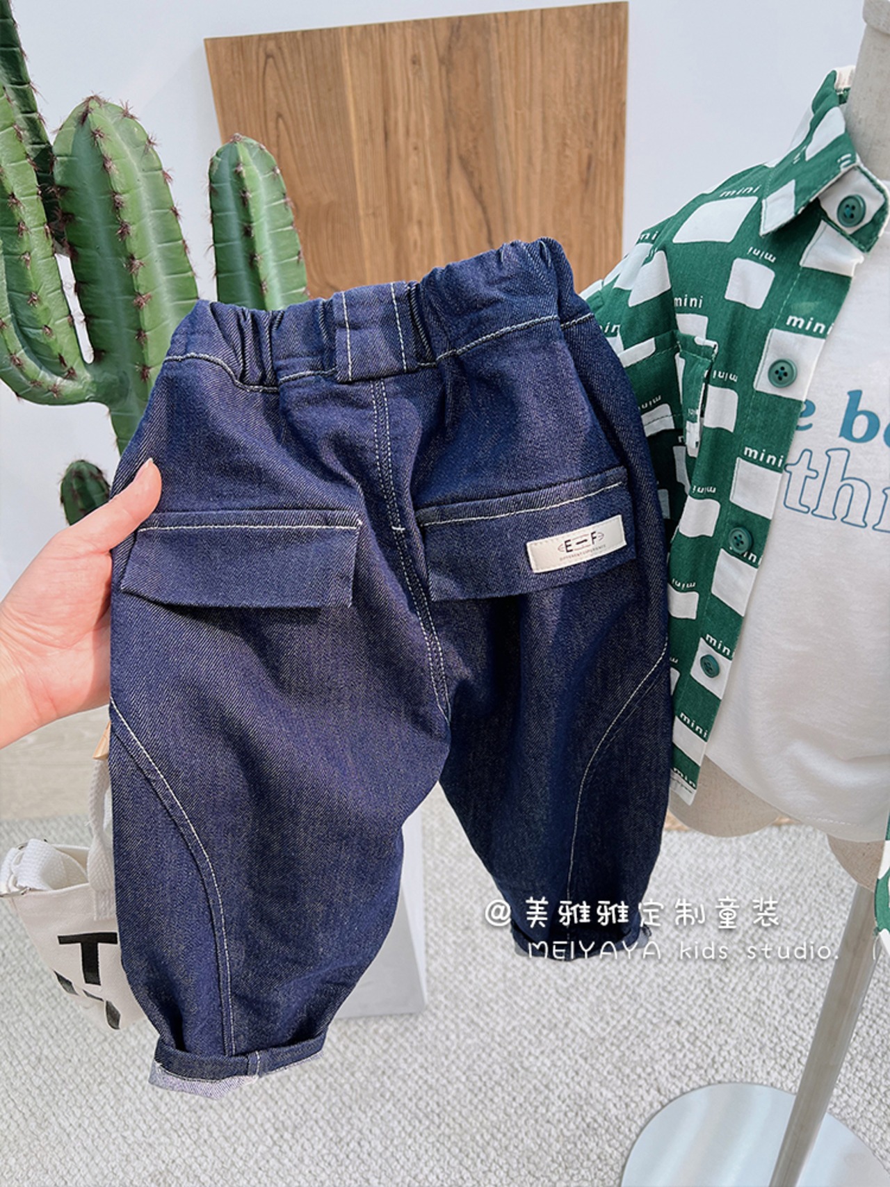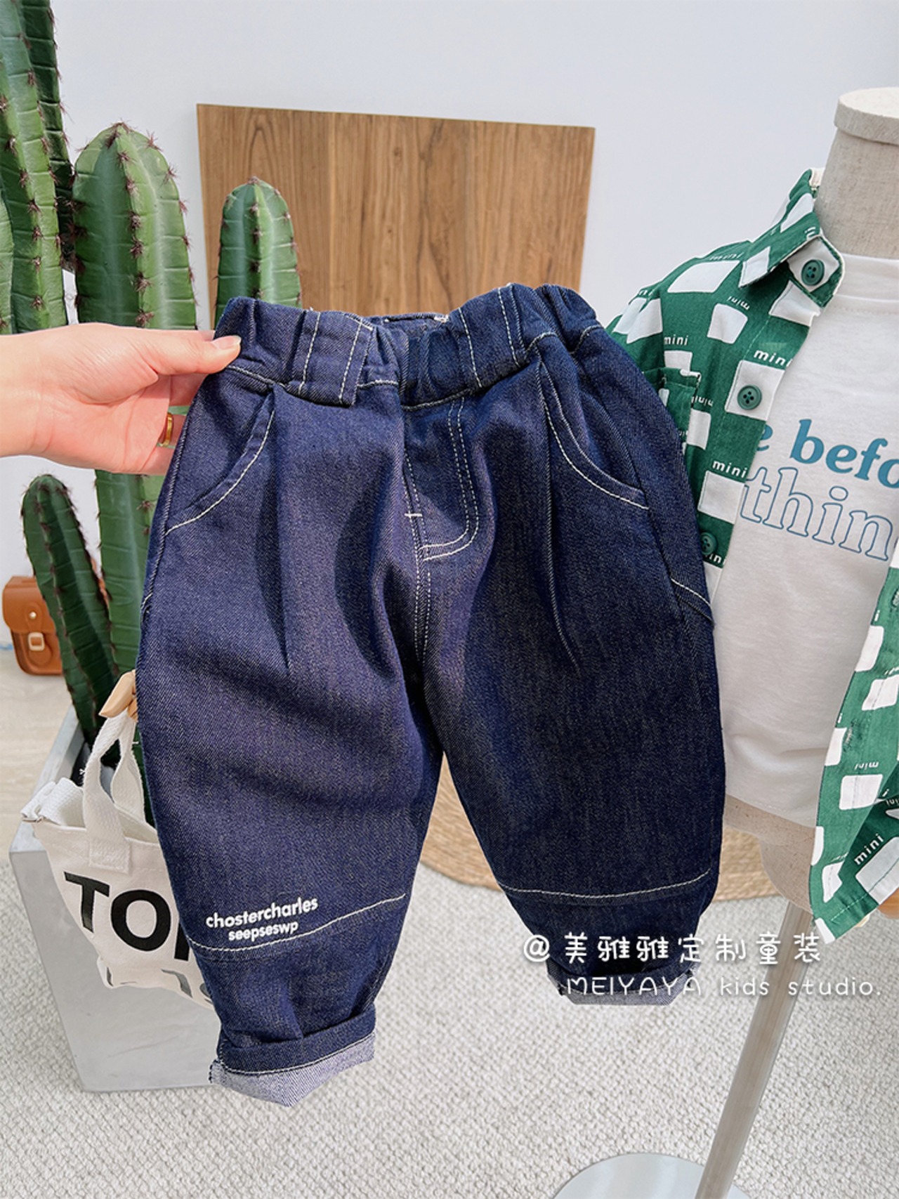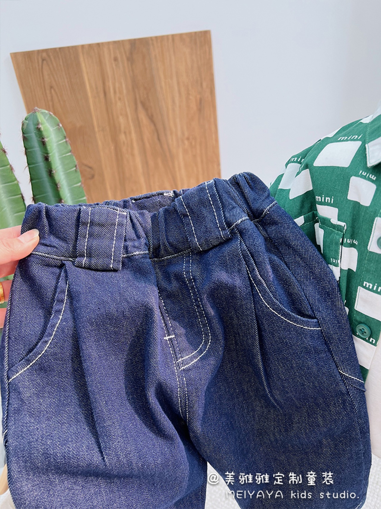スタンダードブルージーンズ ストレッチカジュアルパンツ レトロ エラスティック 伸縮 ステッチ 4/12 春夏 SS 子供服 韓国風 mi0650599367639