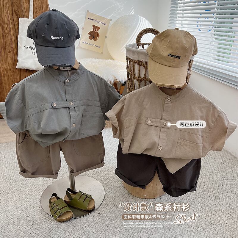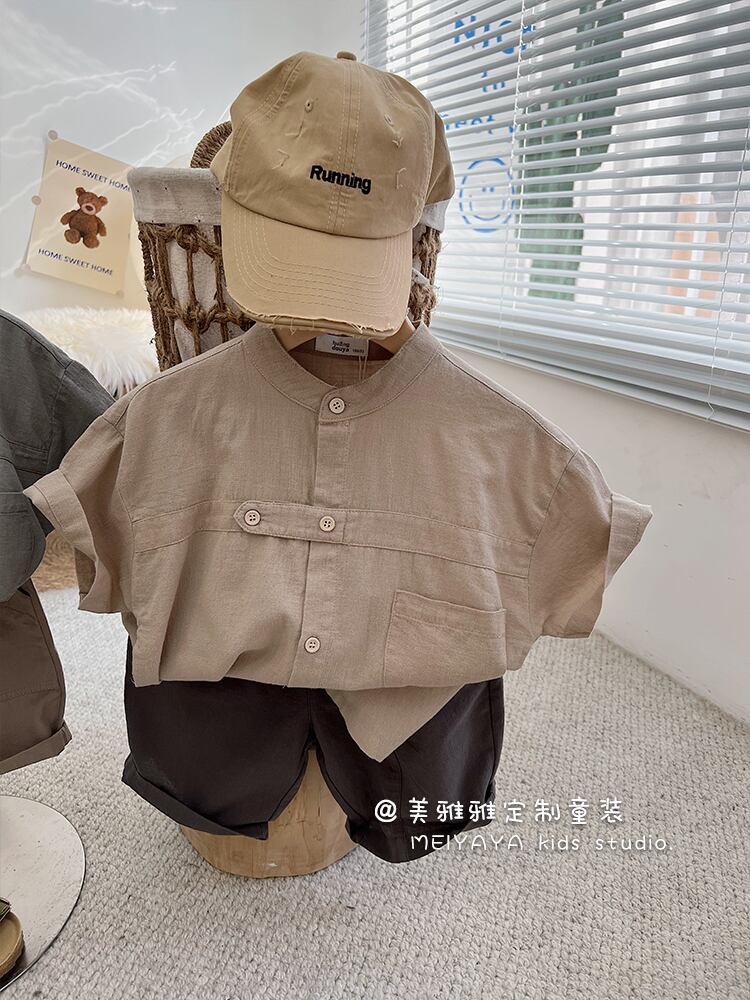 スタイルサマーシャツラウンドネックカーディガン コットン 夏物 Oネック 4/12 春夏 SS 子供服 韓国風 mi0619838093396