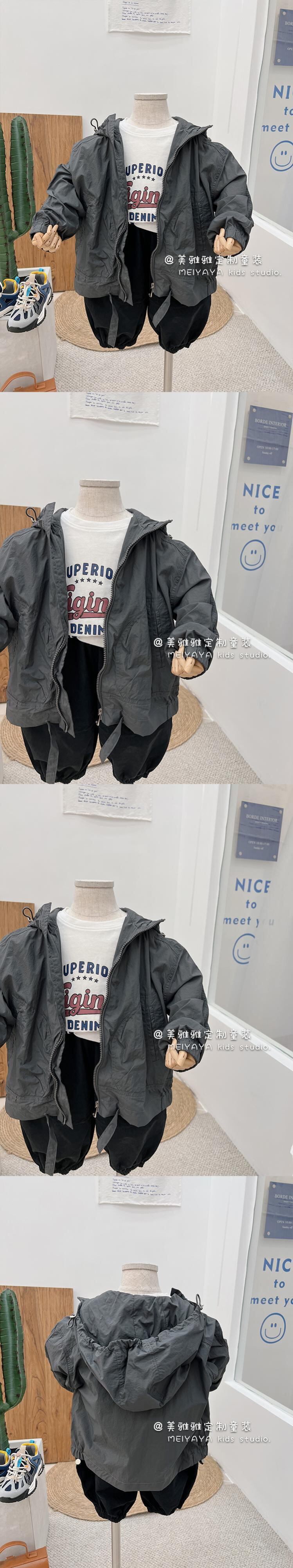 ブラウンカラーフードジッパーカーディガンシャツ ロング 4/12 春夏 SS 子供服 韓国風 mi0653940423489