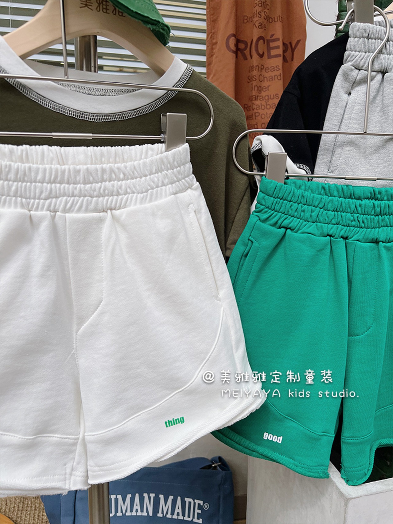 スタイルショーツ グリーンホワイトパンツ ビーチ ブルマー 4/12 春夏 SS 子供服 韓国風 mi0676082652691