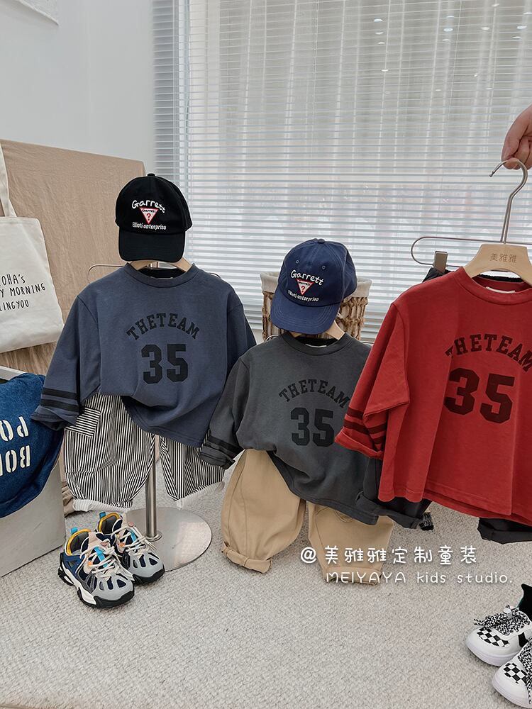 スタンダードスタイルロング レトロ シャツ Tシャツ 4/12 春夏 SS 子供服 韓国風 mi0686297841610