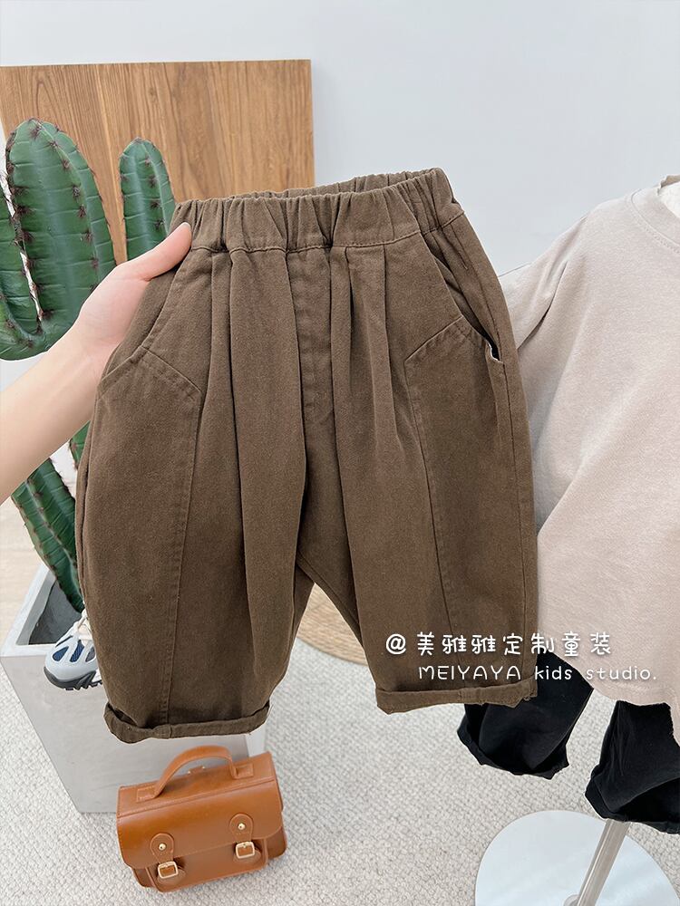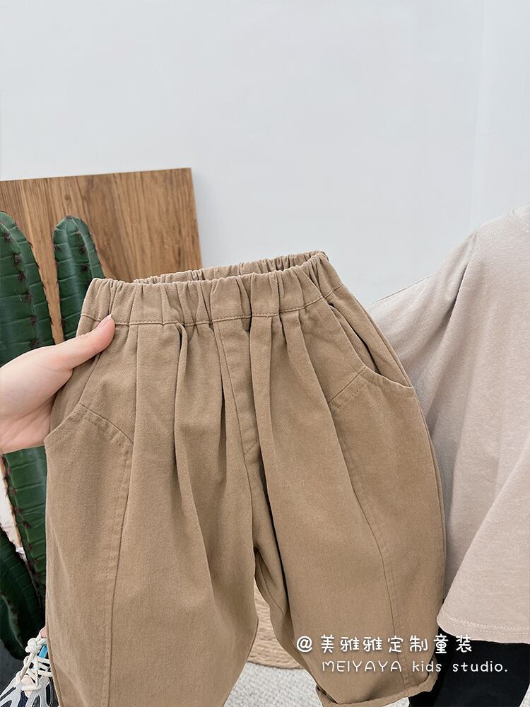 スタンダードスプリングカーキカジュアルパンツ レトロ 春物 ステッチ 4/12 春夏 SS 子供服 韓国風 mi06170288496