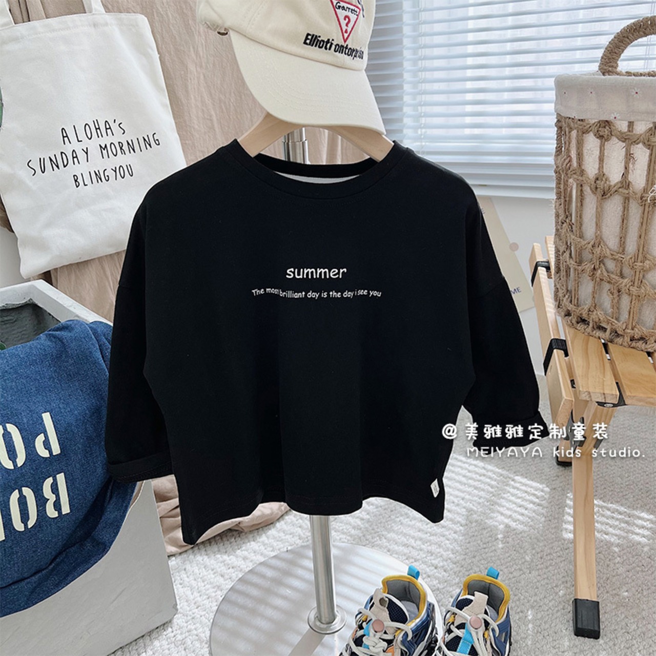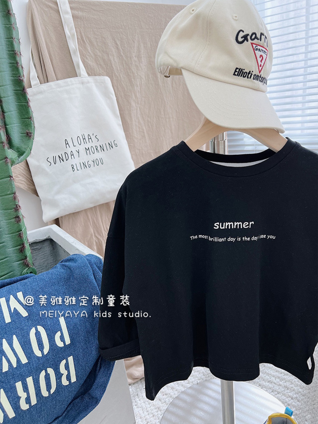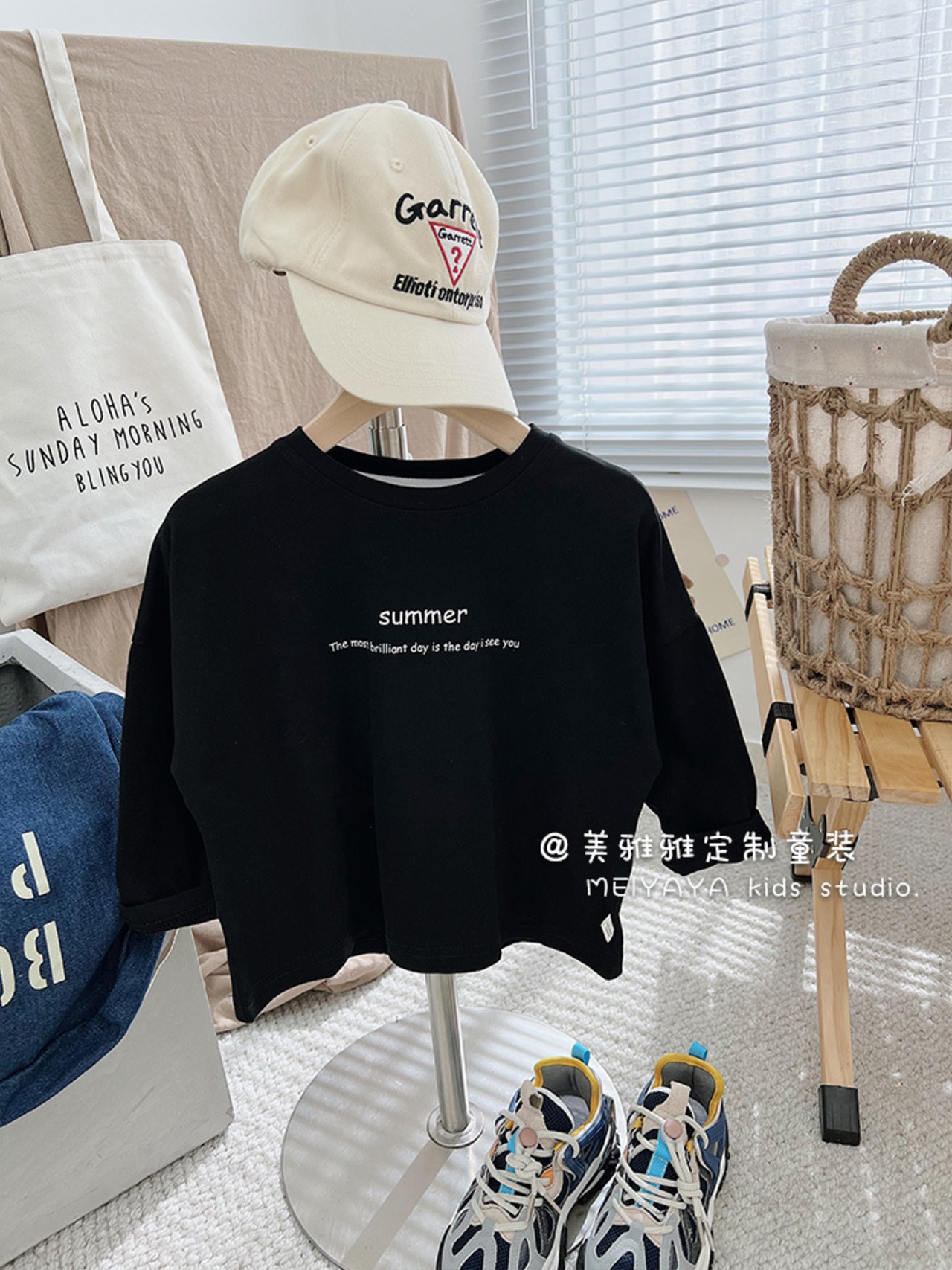 スプリングブラックプリントトップス ロング シャツ 春物 Tシャツ 4/12 春夏 SS 子供服 韓国風 mi0610655702635
