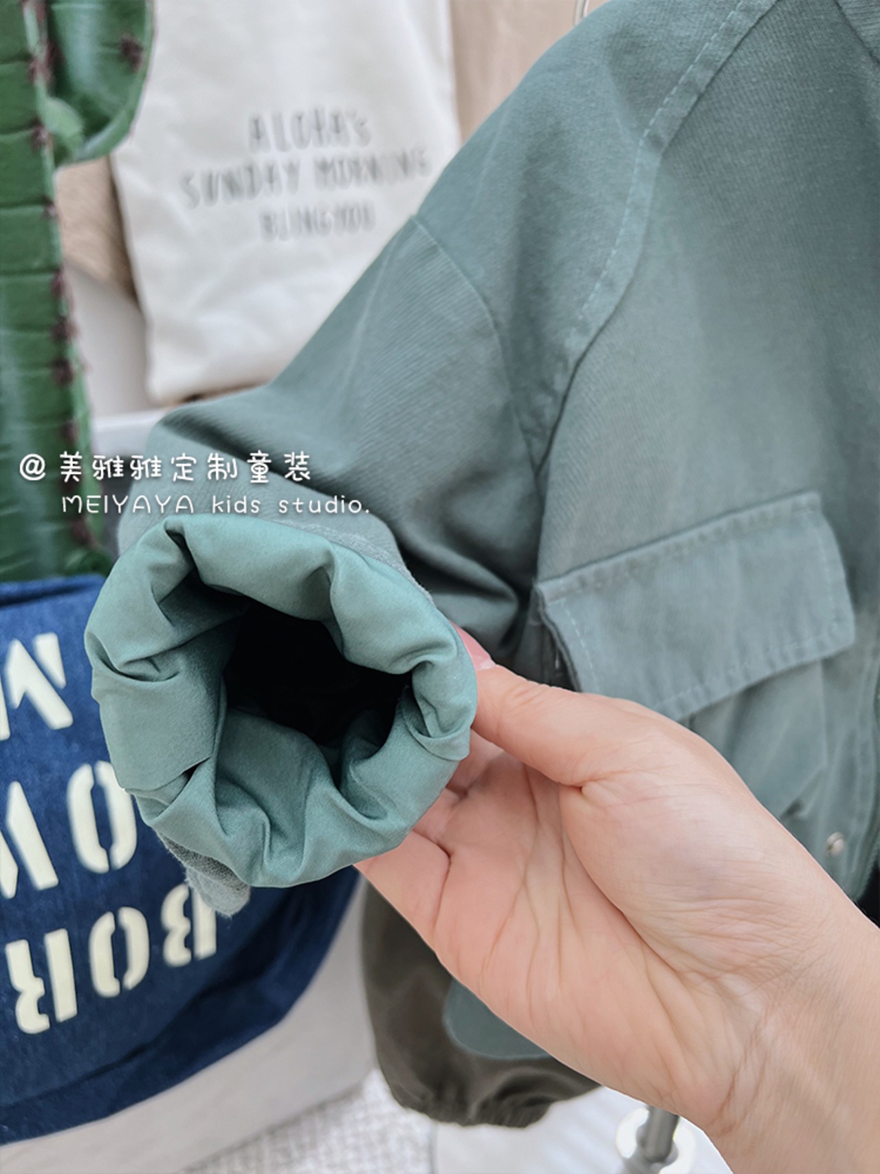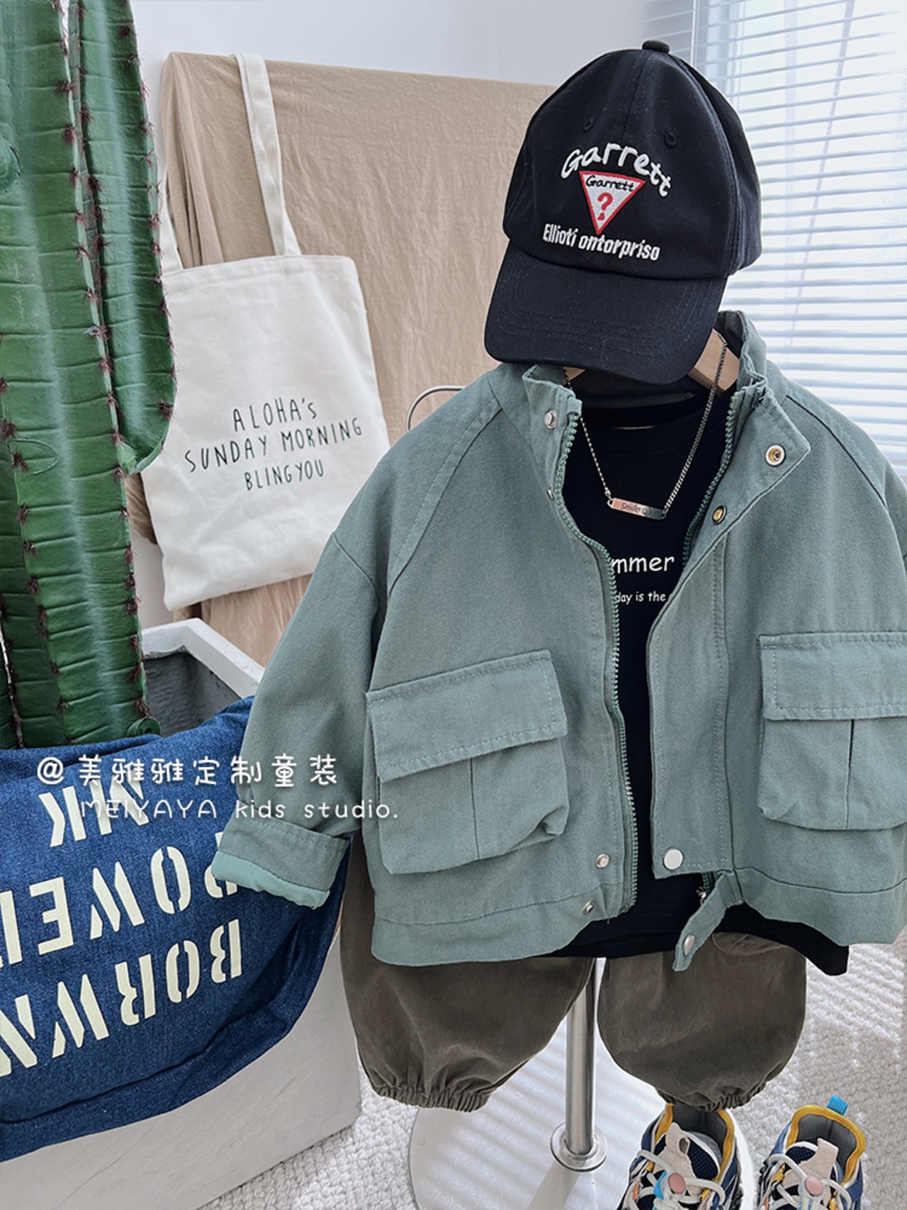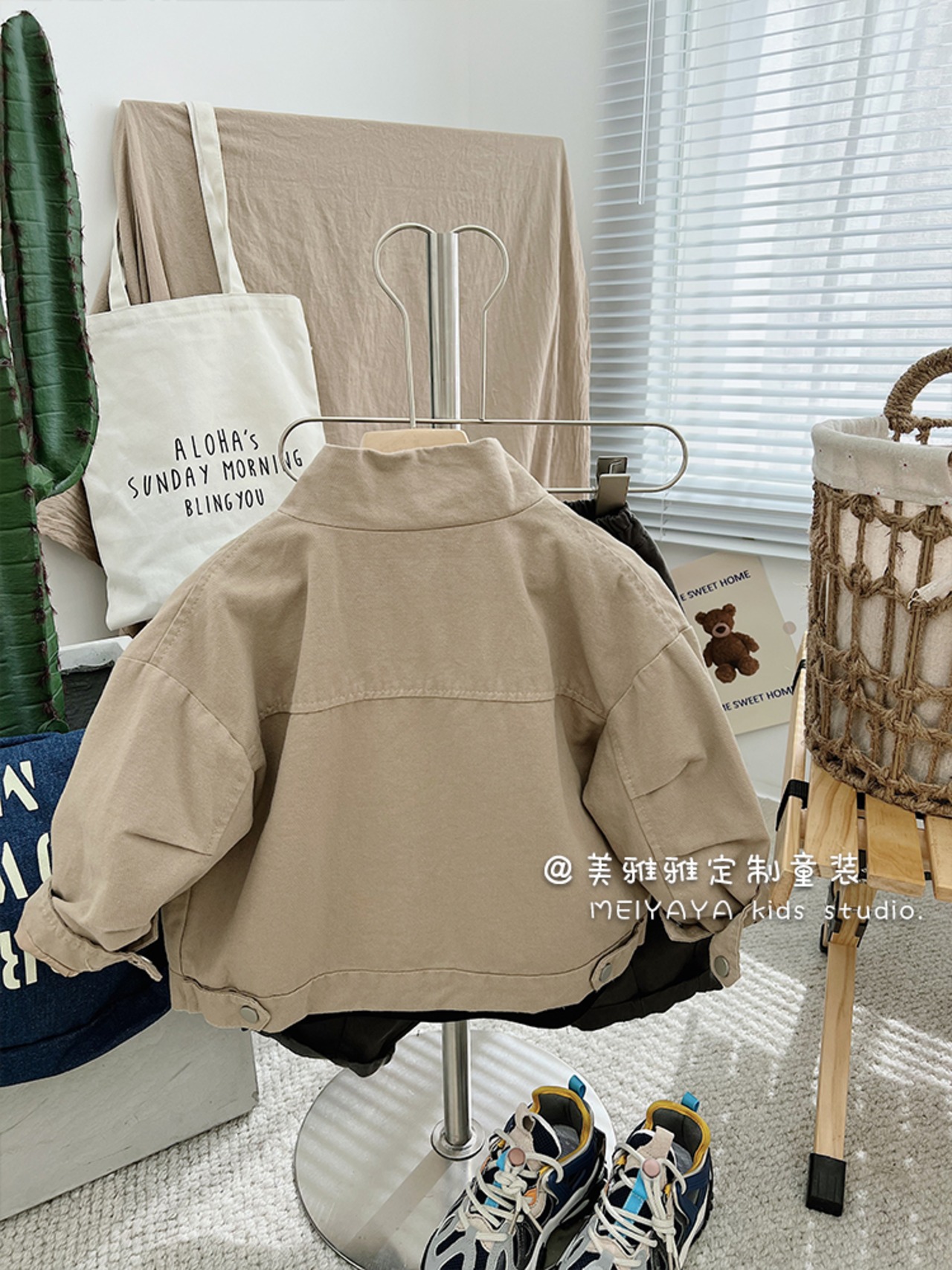 スタンダードスタイルスタンドカラーカラーポケットカーディガンジッパージャケット スプリング レトロ 春物 4/12 春夏 SS 子供服 韓国風 mi0645427343029