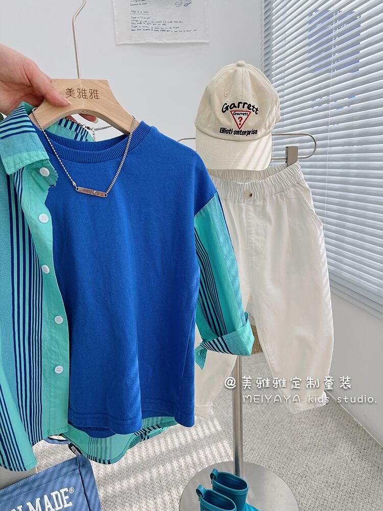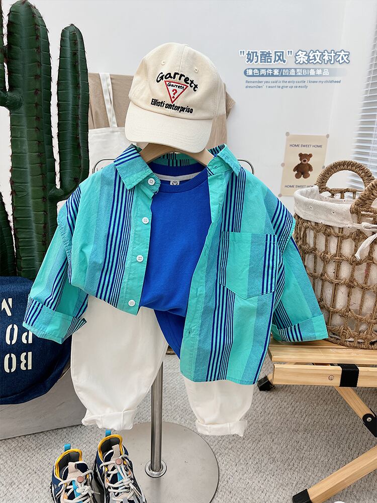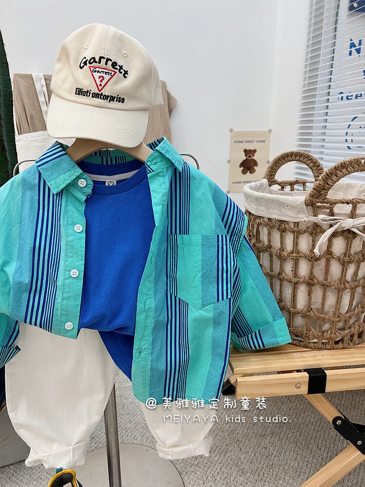 スタイルストライプブルーシャツ 4/12 春夏 SS 子供服 韓国風 mi0684055628279