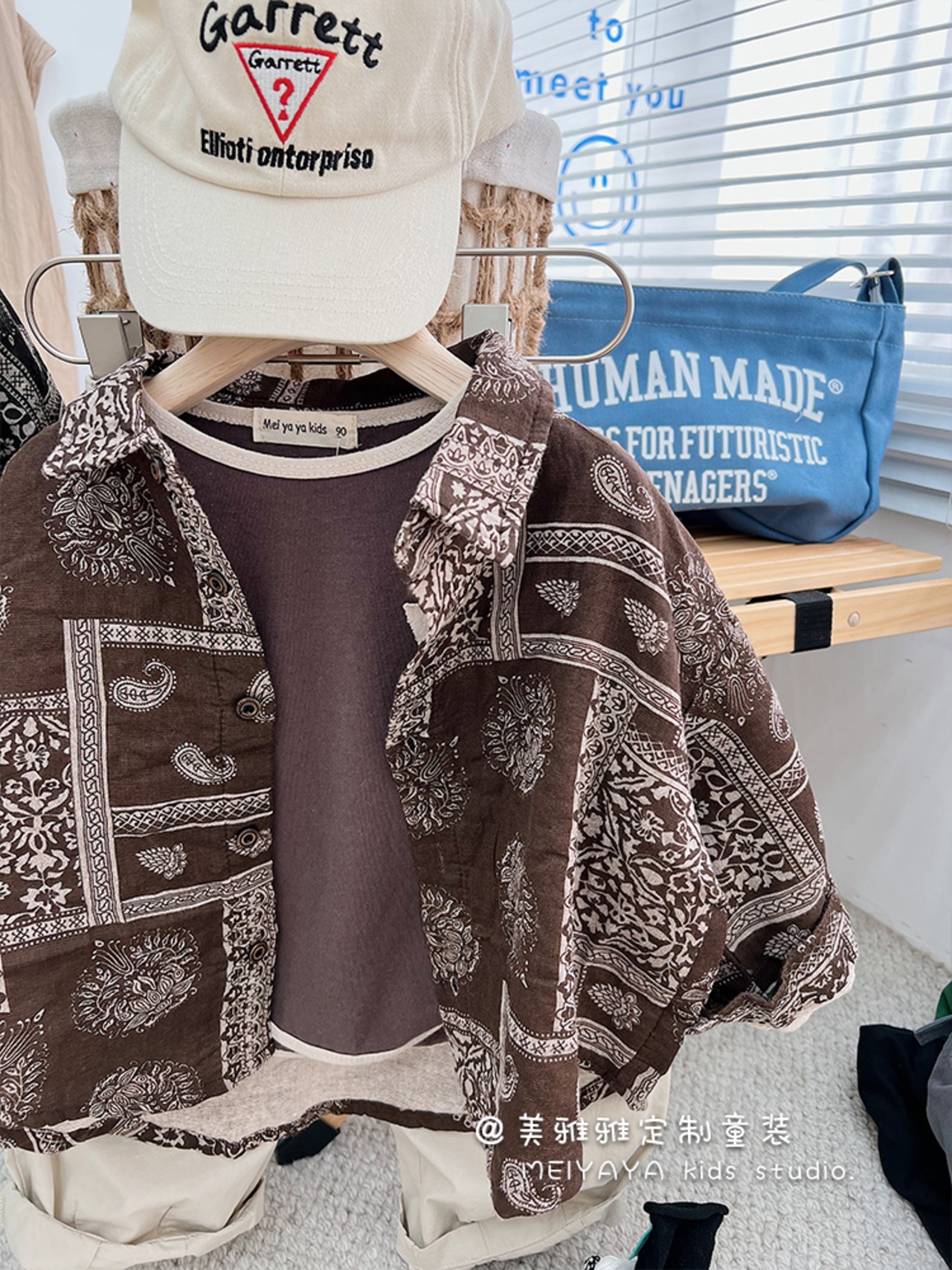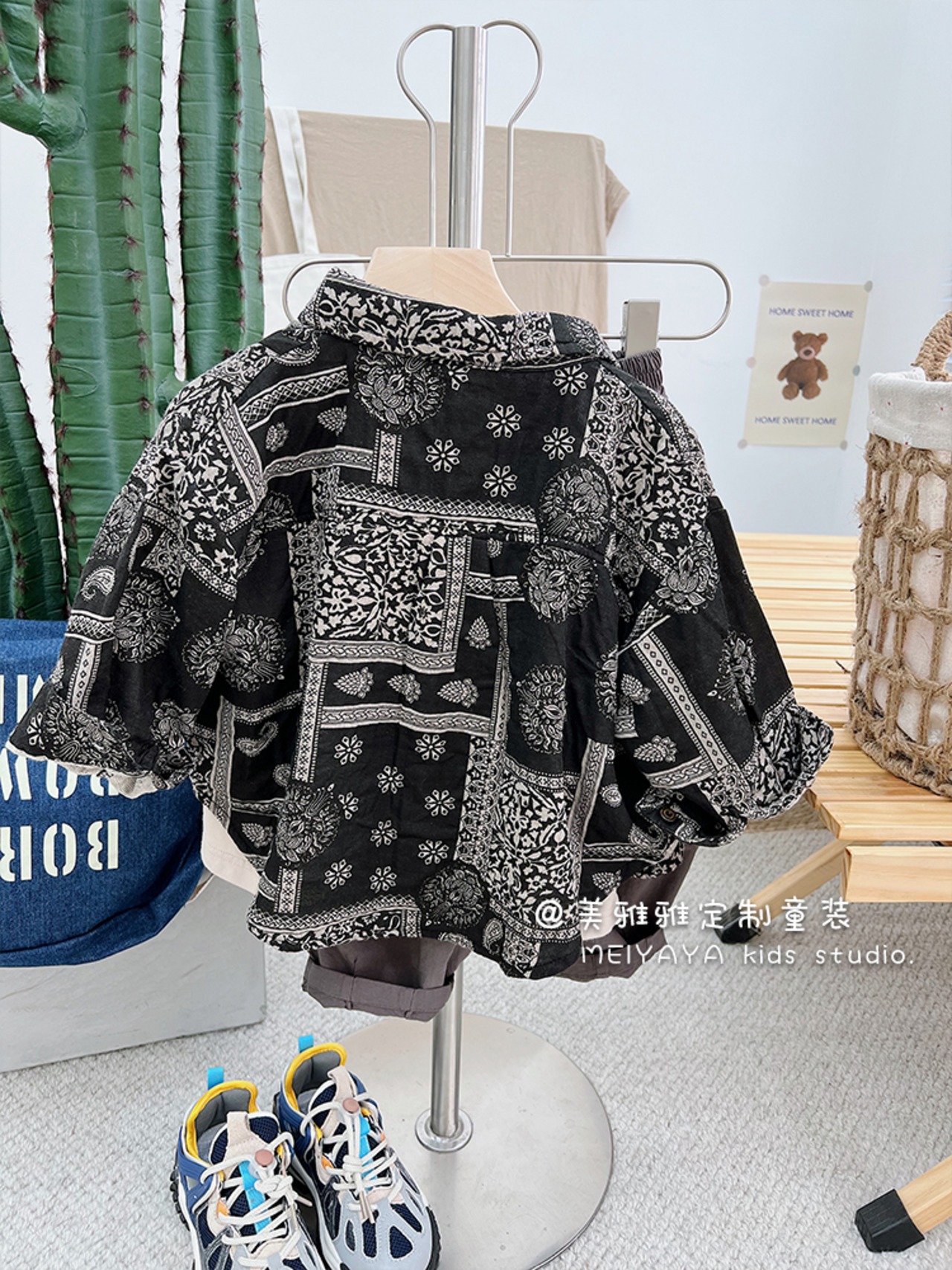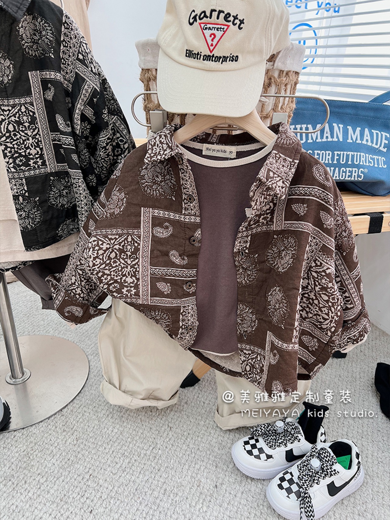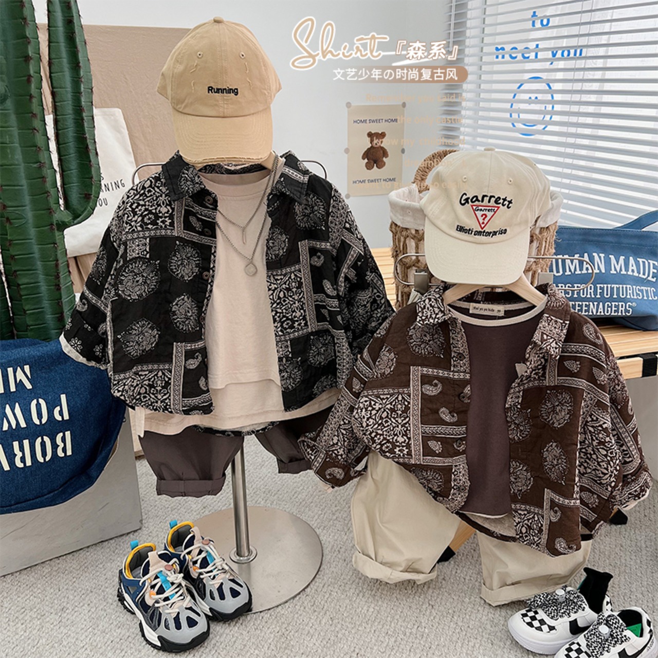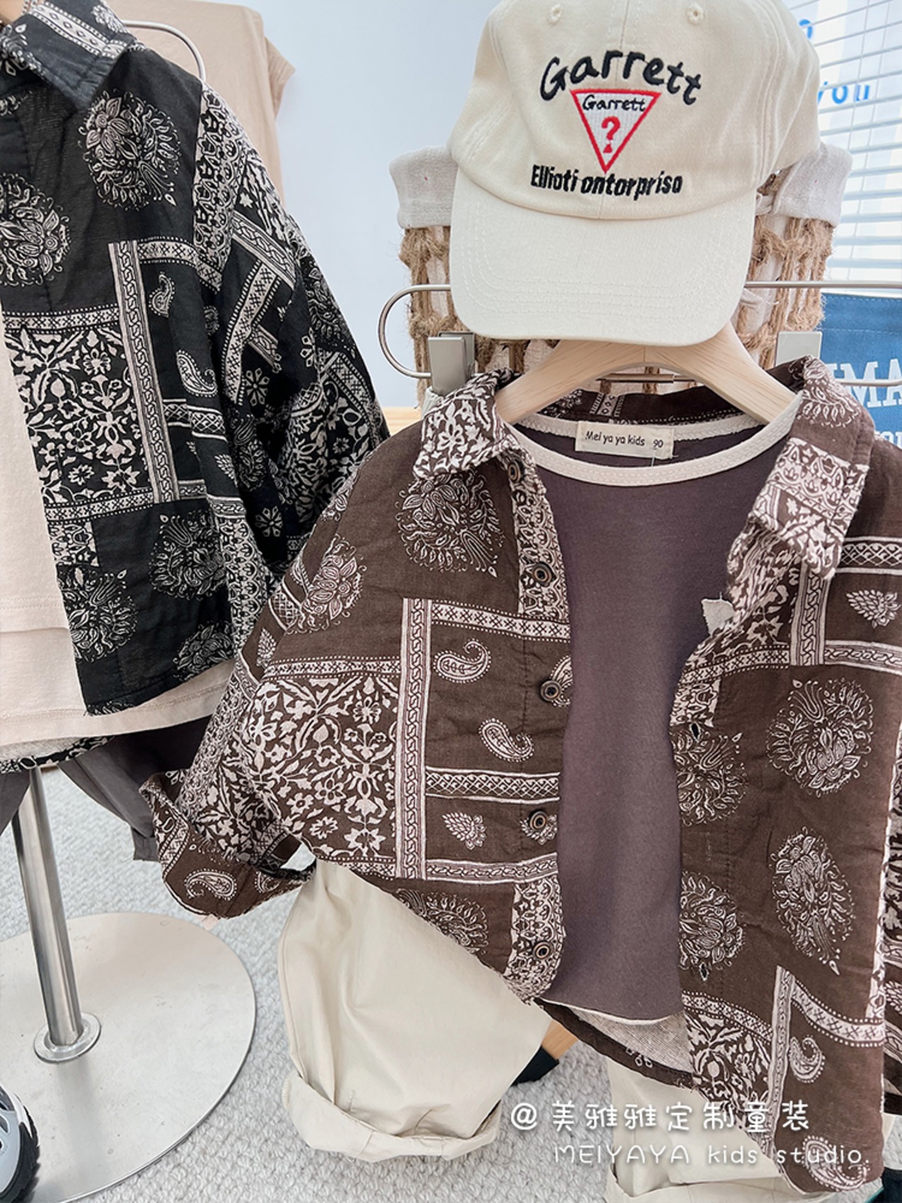 スプリングスタンダードプリントカーディガンジャケット シャツ ロング レトロ 春物 4/12 春夏 SS 子供服 韓国風 mi063486135186