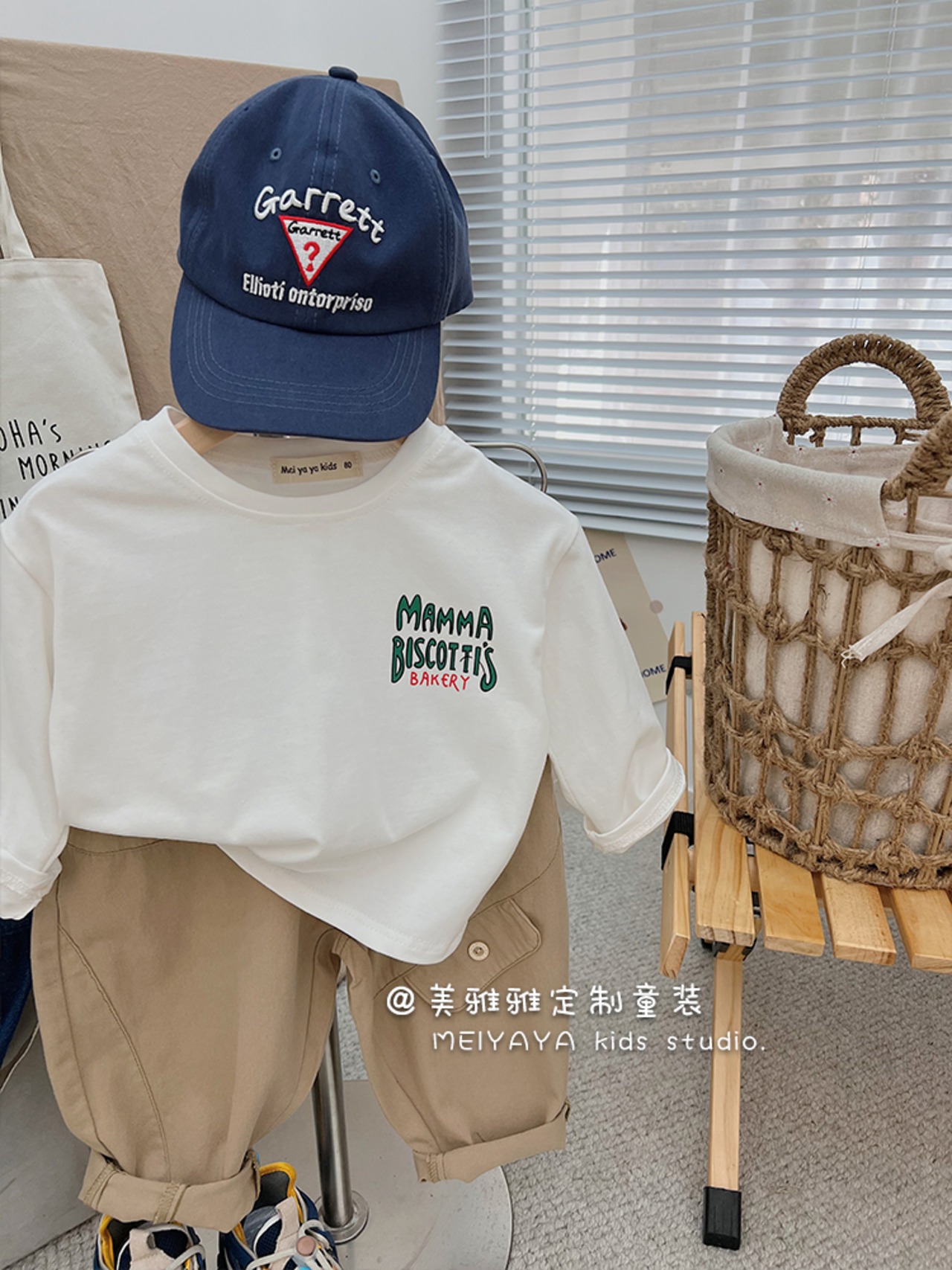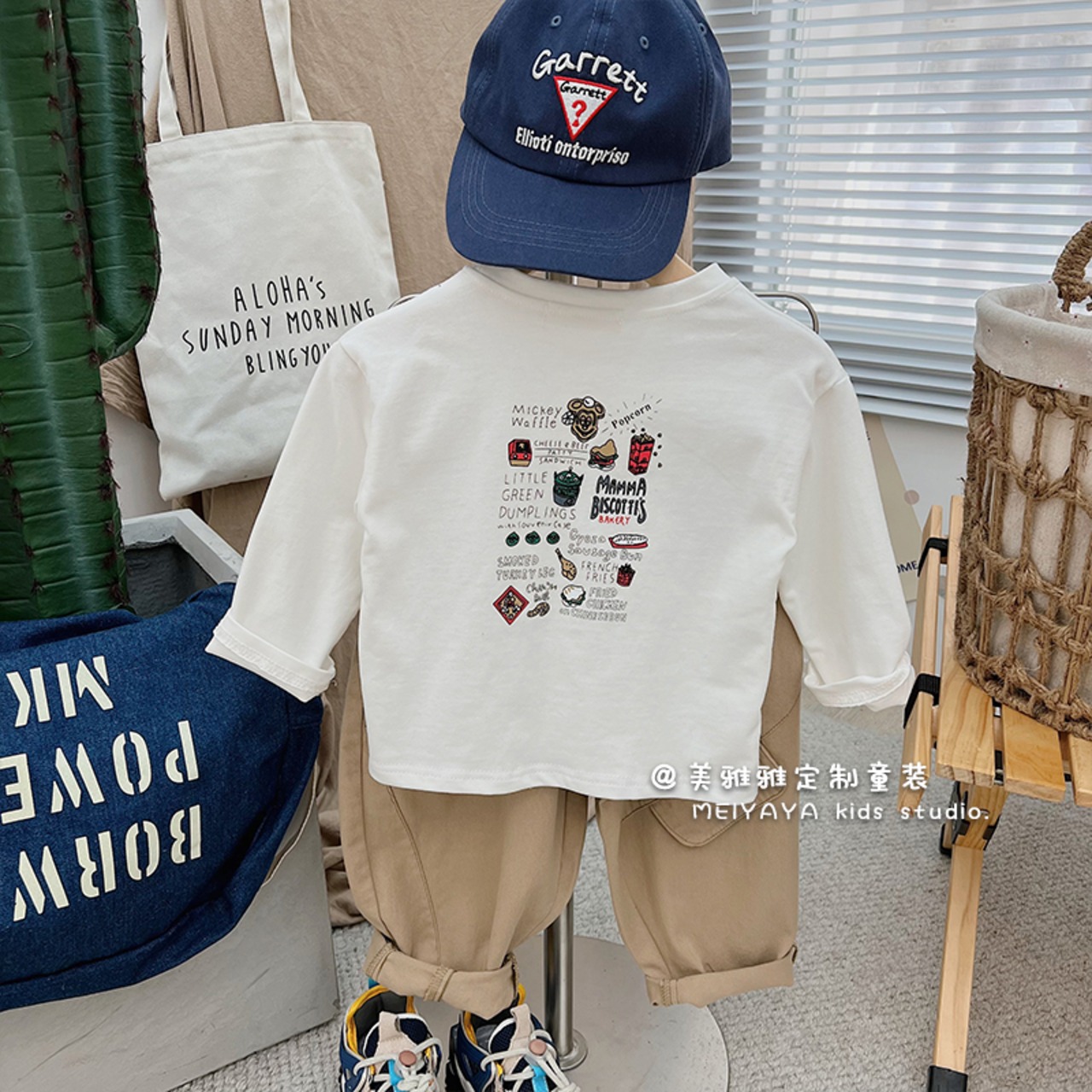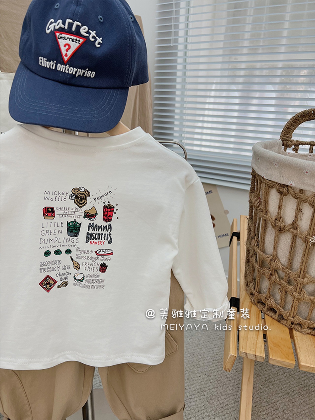 スプリングホワイトプリントシャツ コットン 春物 4/12 春夏 SS 子供服 韓国風 mi0687104756691