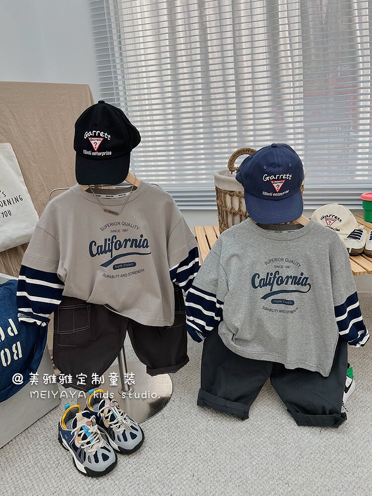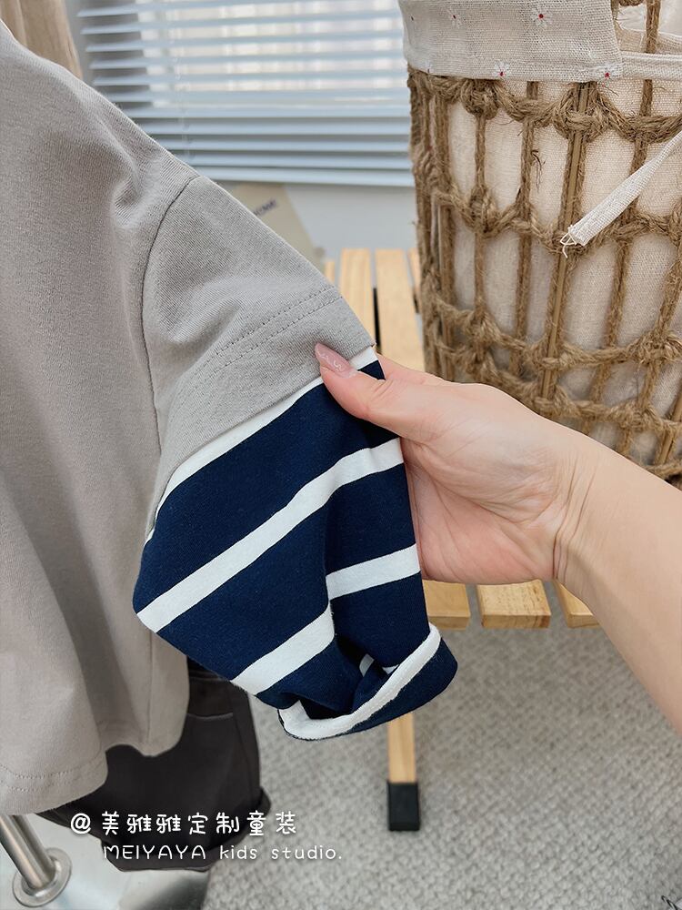 スタイルストライプTシャツ シャツ スプリングラウンドネック 春物 Oネック ステッチ 4/12 春夏 SS 子供服 韓国風 mi0630889625943