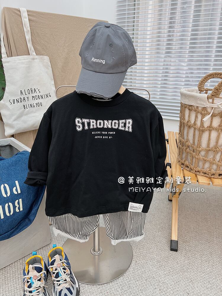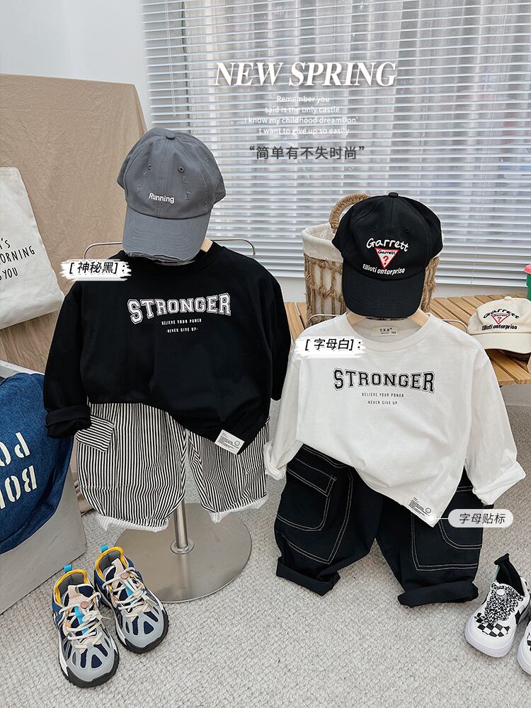 スプリングプリント柄プルオーバー ルーズTシャツ トップス ロング 春物 4/12 春夏 SS 子供服 韓国風 mi0683915992436