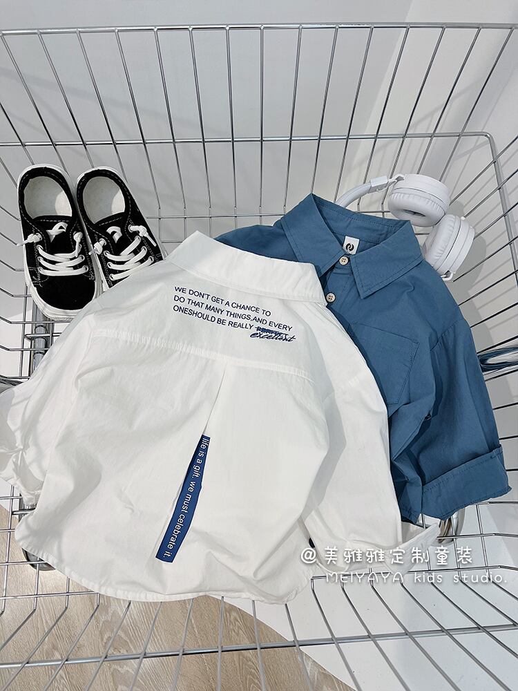 シャツ ホワイトポケットトップス コットン 4/12 春夏 SS 子供服 韓国風 mi069313041275