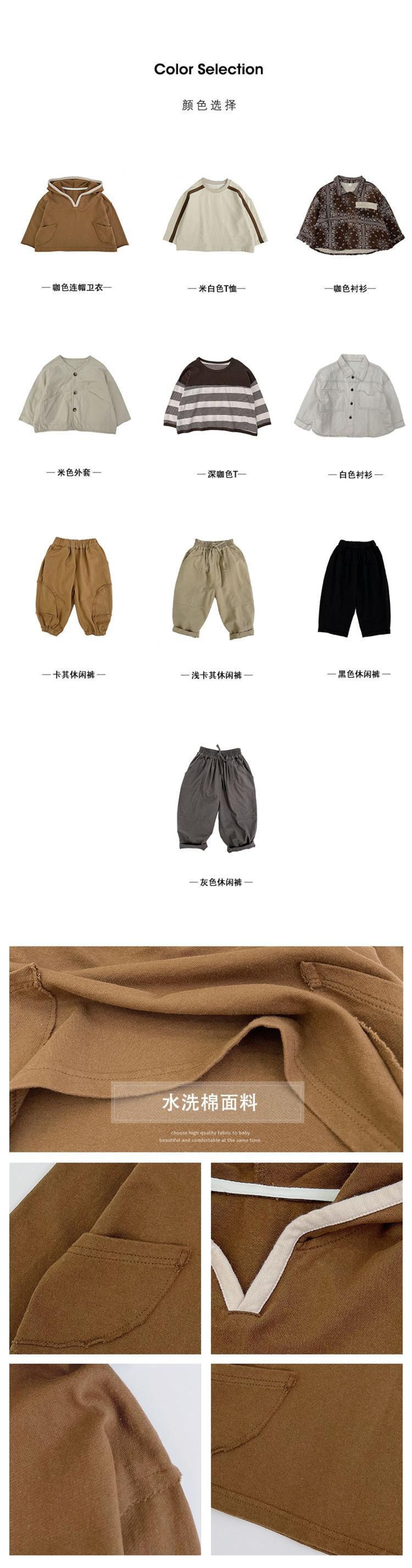 色:Ceeシャツ,黒いスラックス,ベージュコート,茶色のパーカー,グレーのカジュアルパンツ,オフホワイトTシャツ,カーキスラックス,白のシャツ,ダークシーT,ライトカーキパンツ