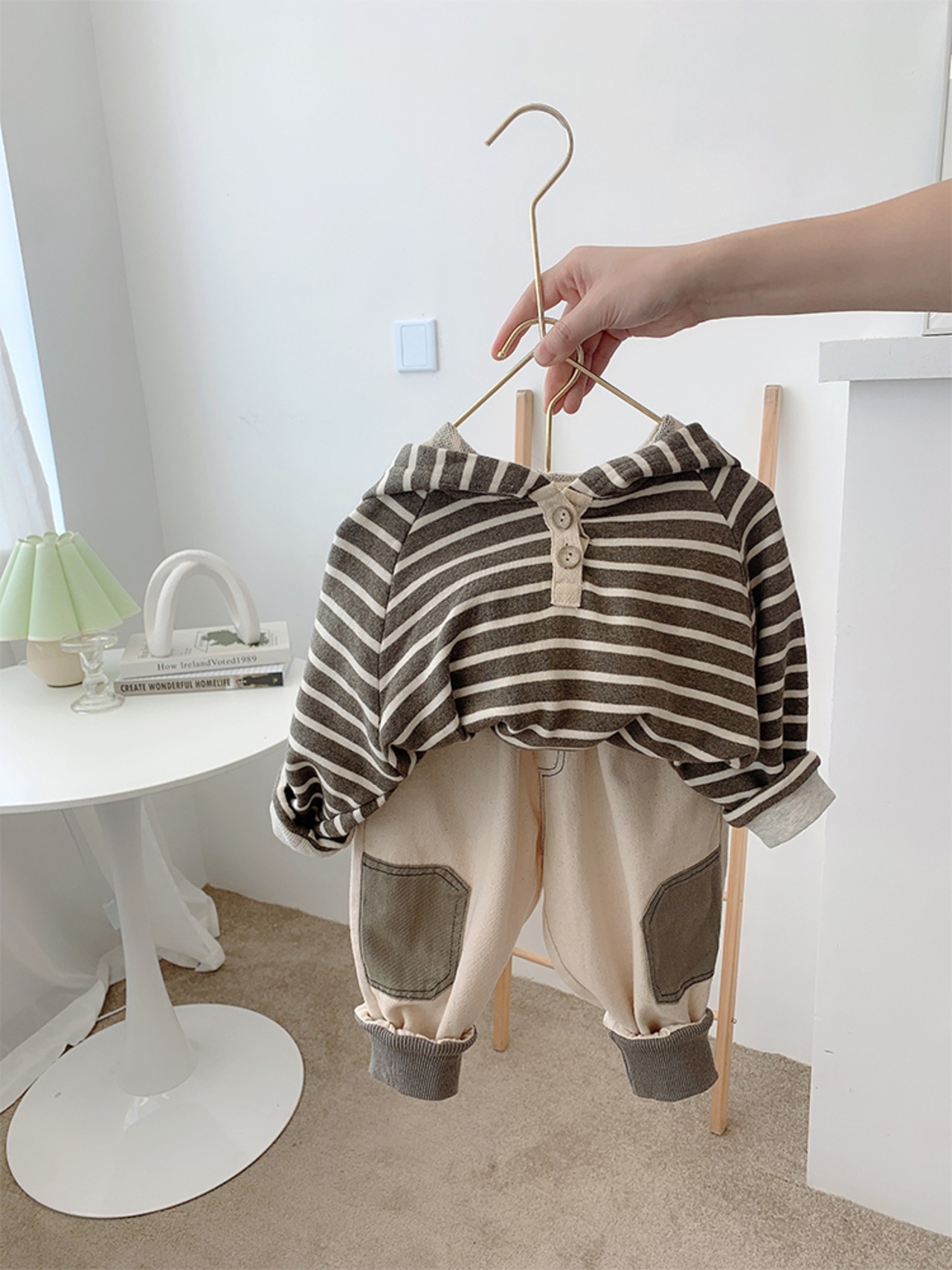 スプリングフードストライプ 春物 4/12 春夏 SS 子供服 韓国風 mi0679088291444