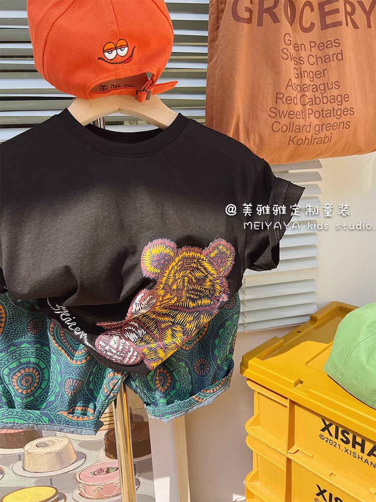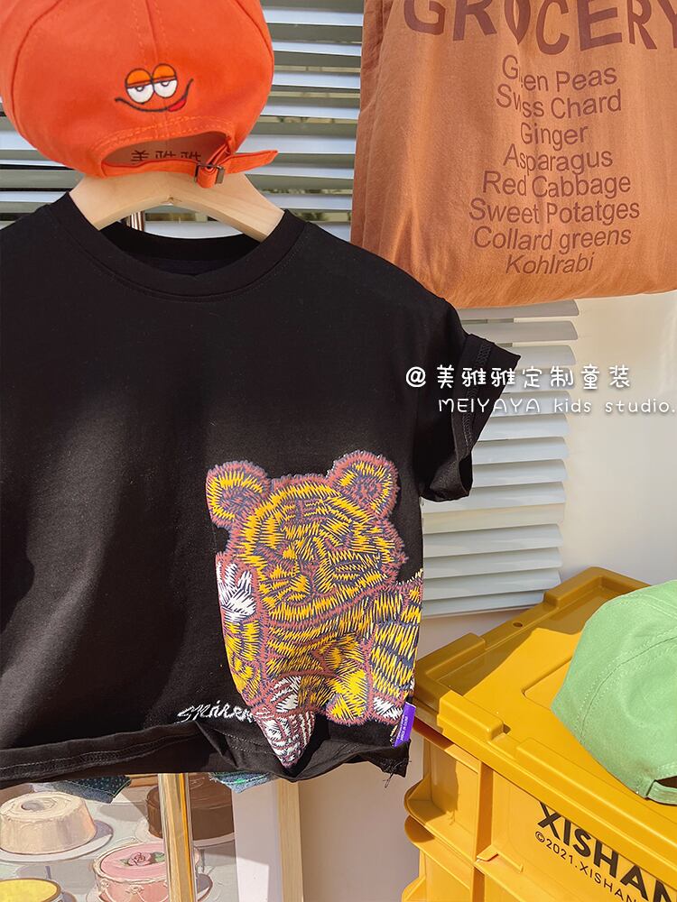 レッドTシャツ サマードレス ラウンドネックホワイト ストリート 夏物 Oネック 4/12 春夏 SS 子供服 韓国風 mi0673583971042