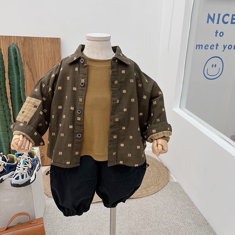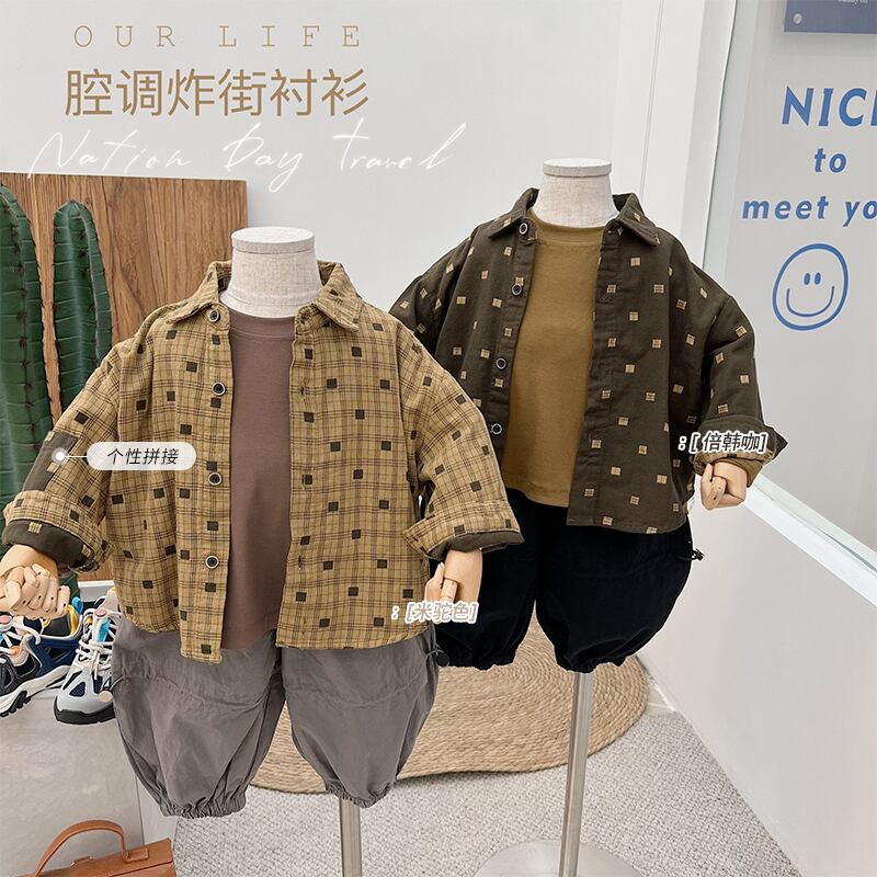 シャツ スプリングスタイル格子柄コート コットン ストリート 春物 4/12 春夏 SS 子供服 韓国風 mi065614594270